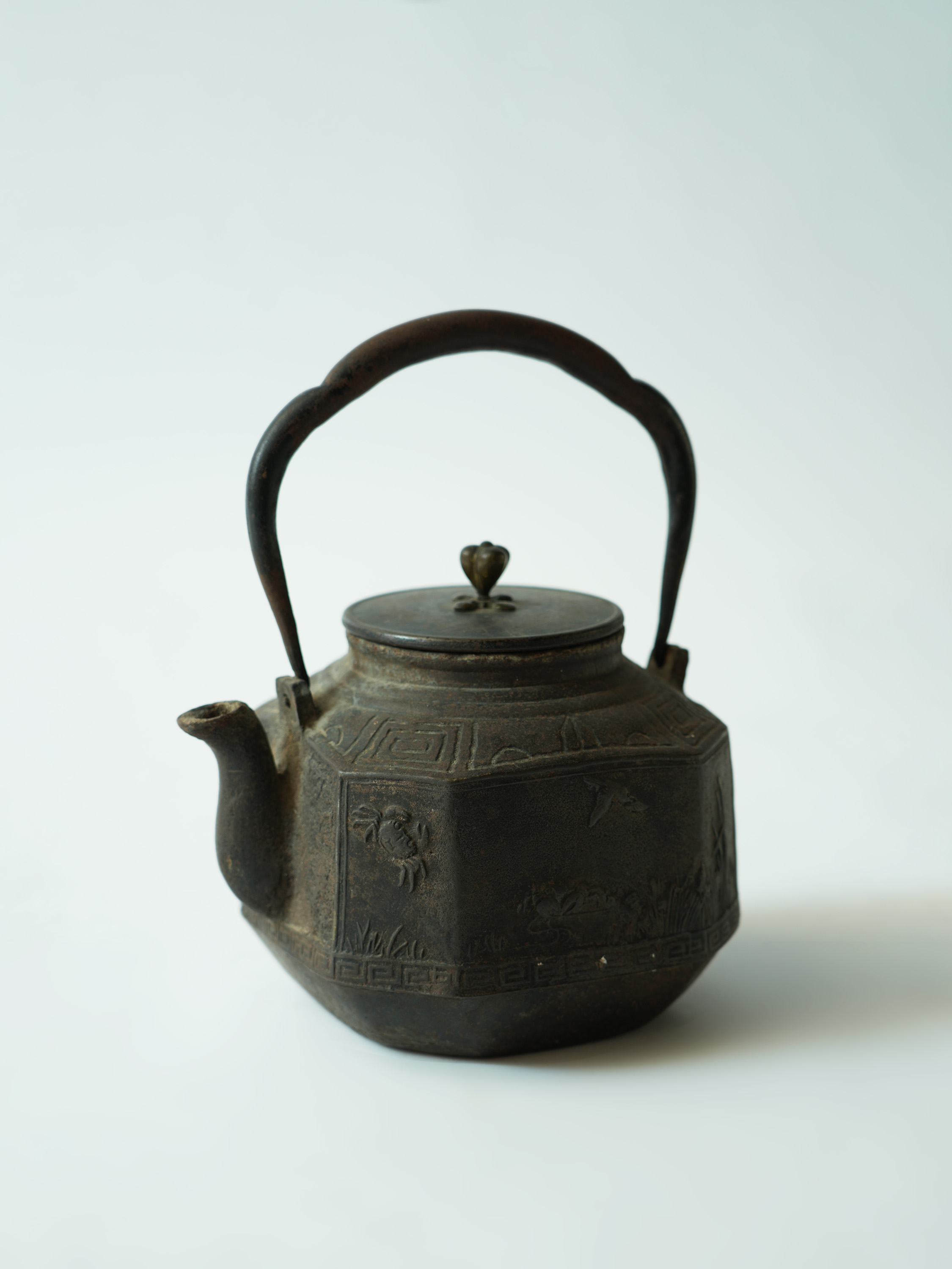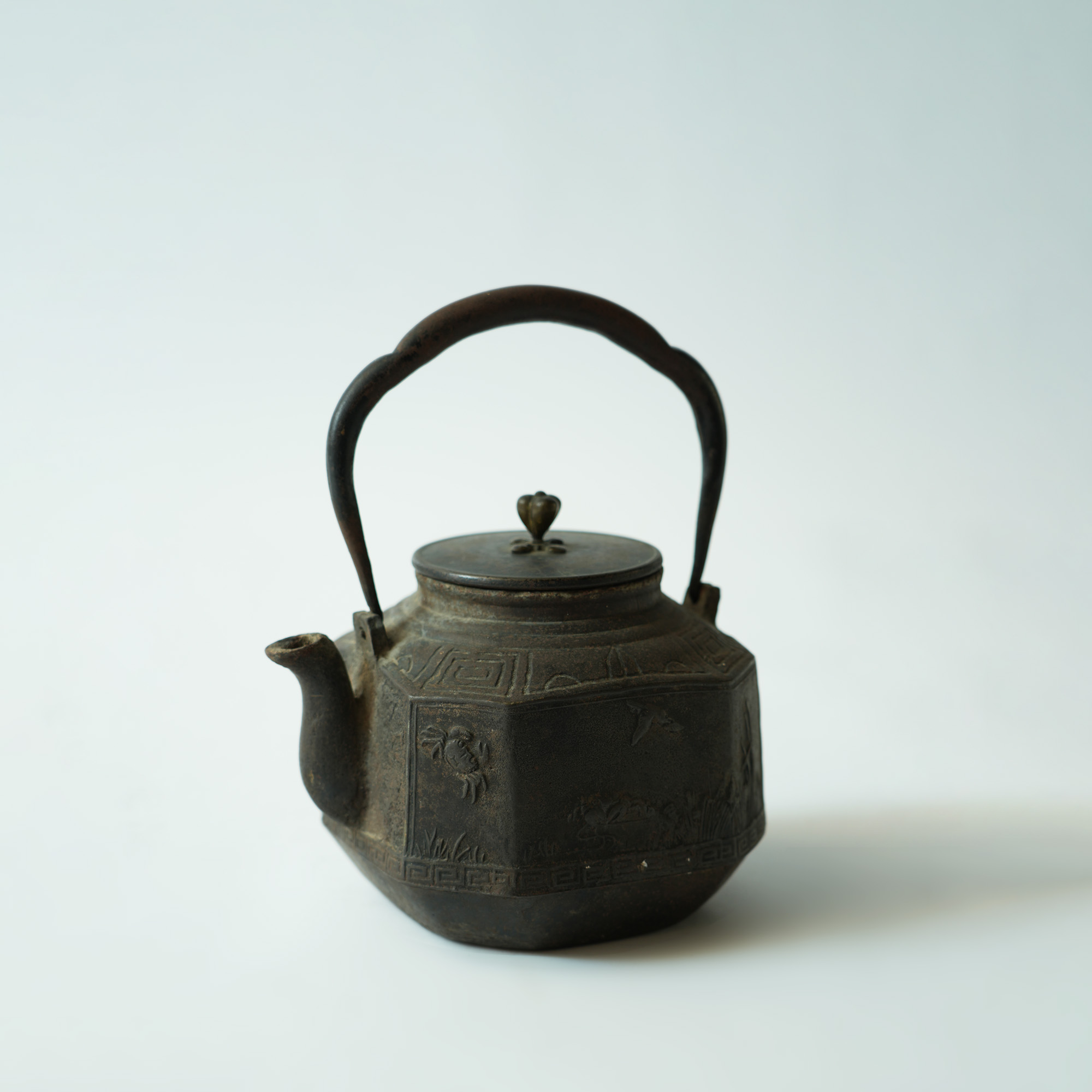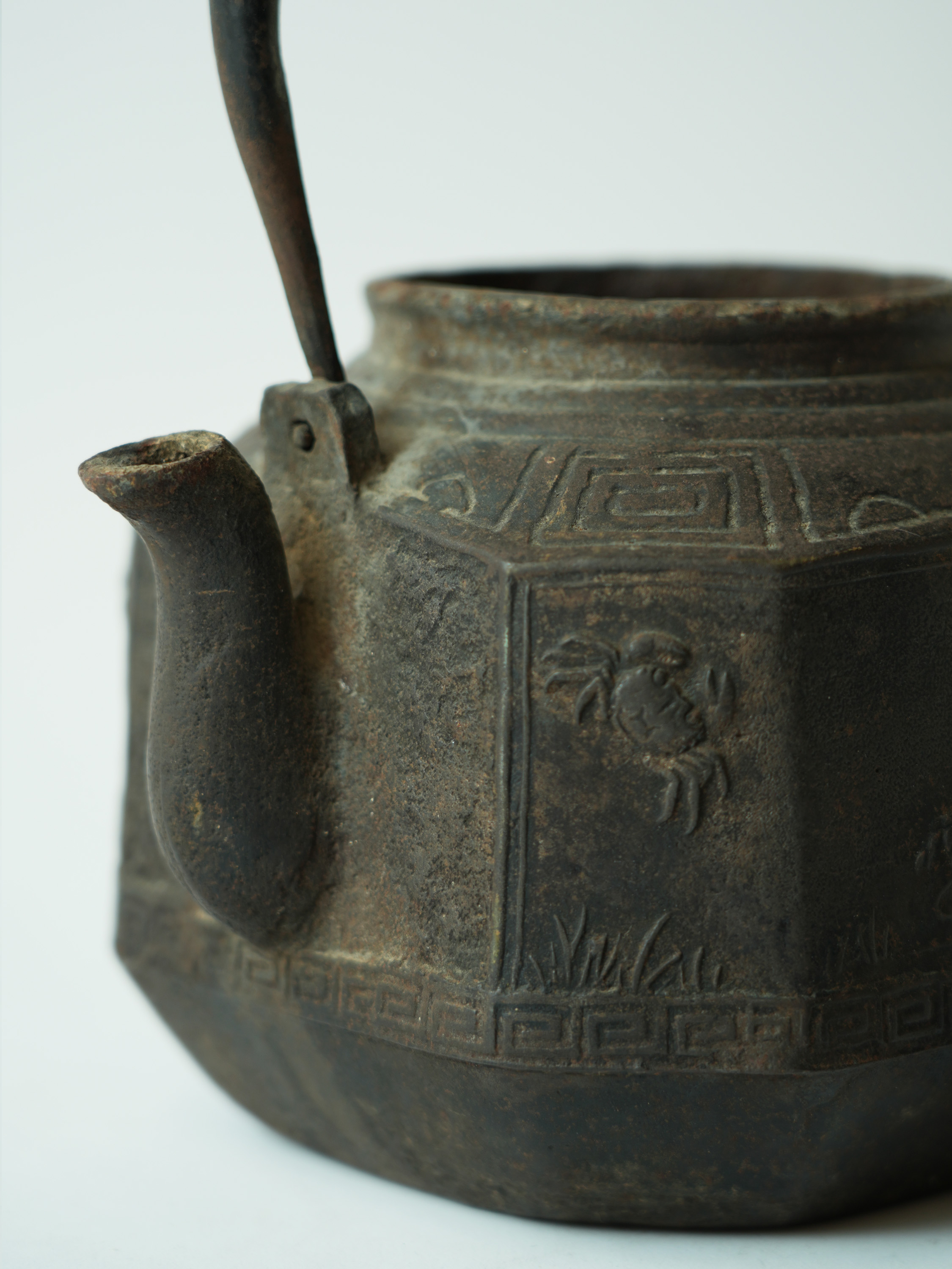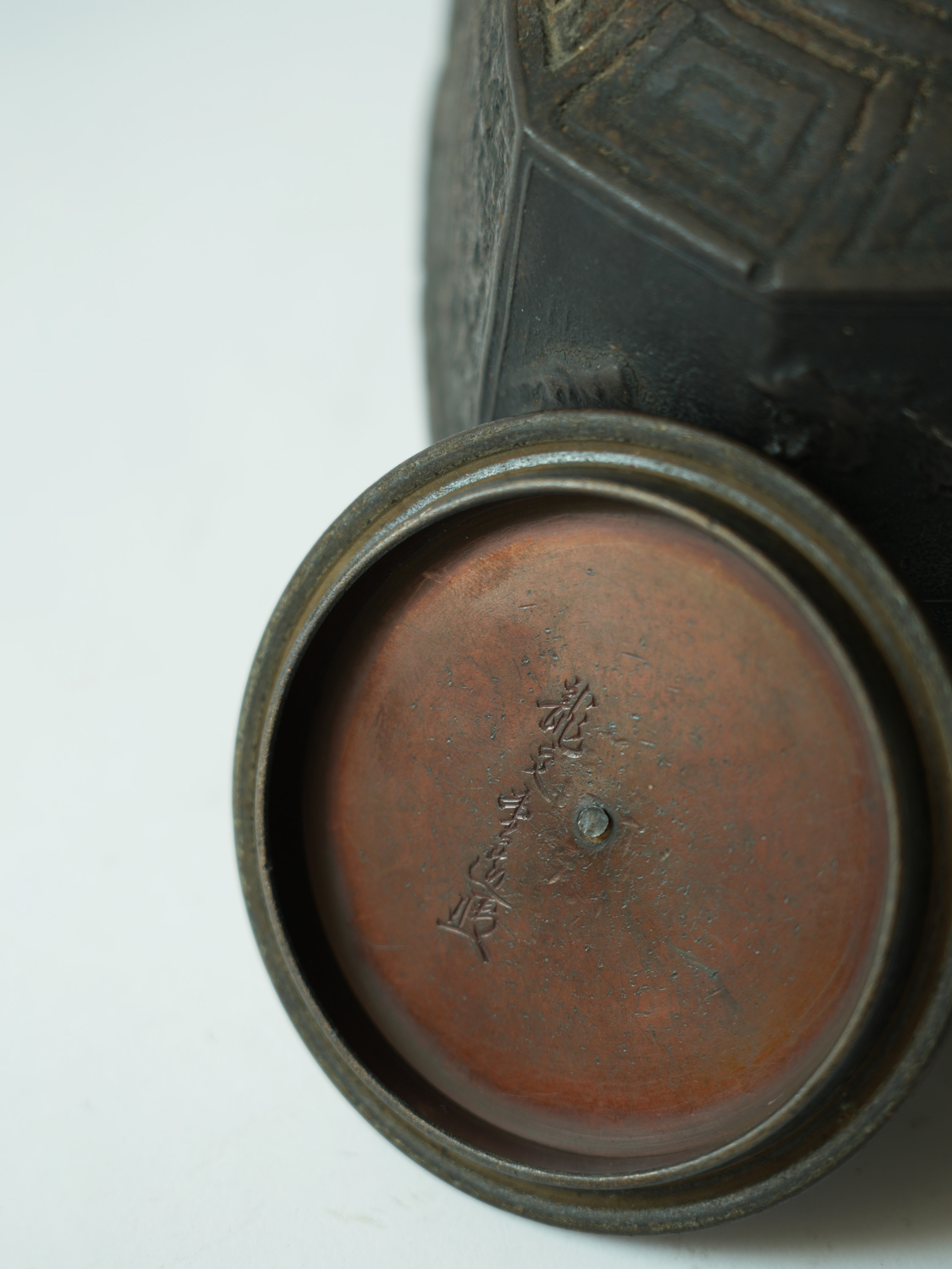 京都龙文堂八角形老铁壶18.5*15.5*23cm