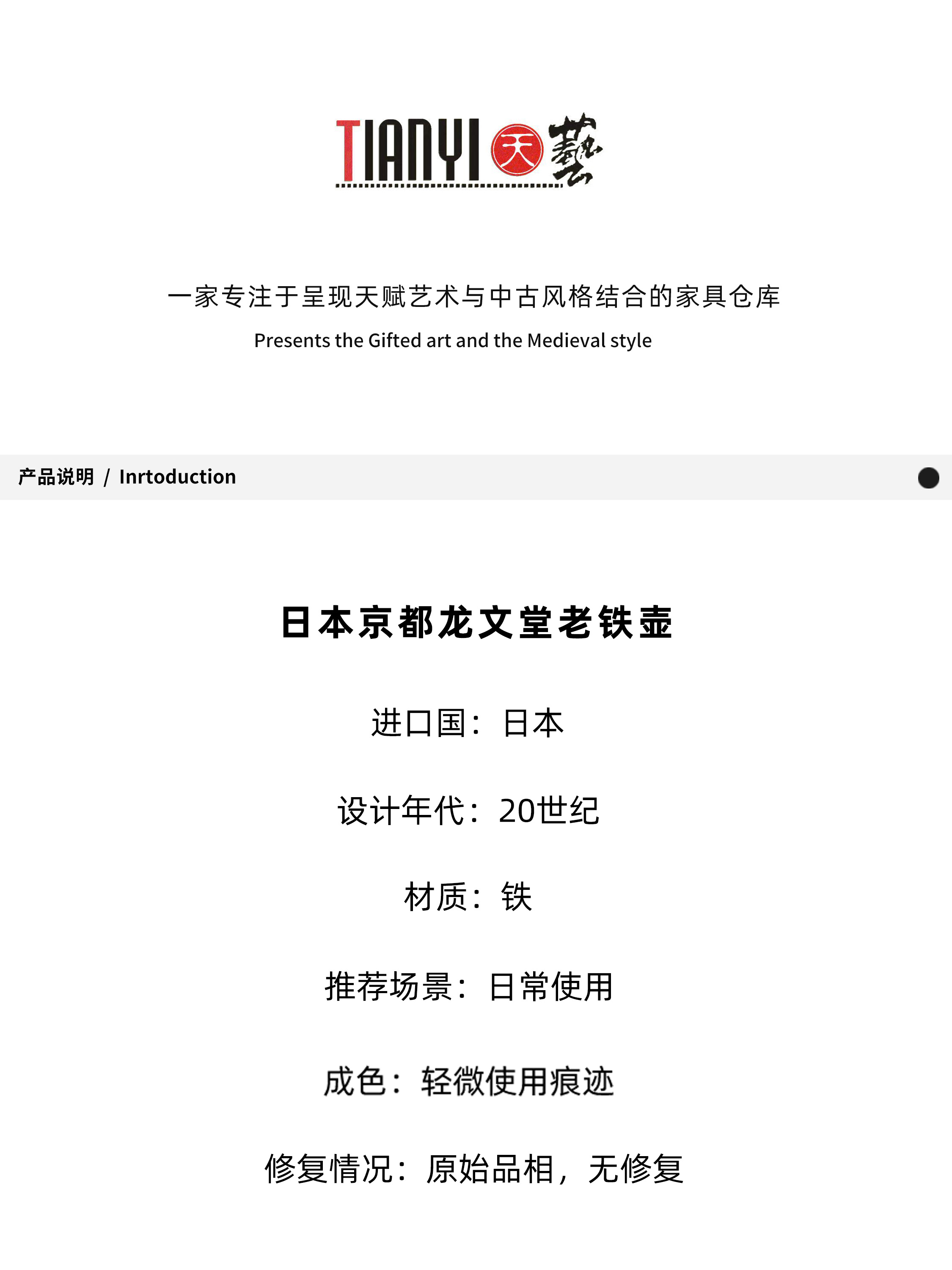 京都龙文堂老铁壶18.3*15.5*24.5cm