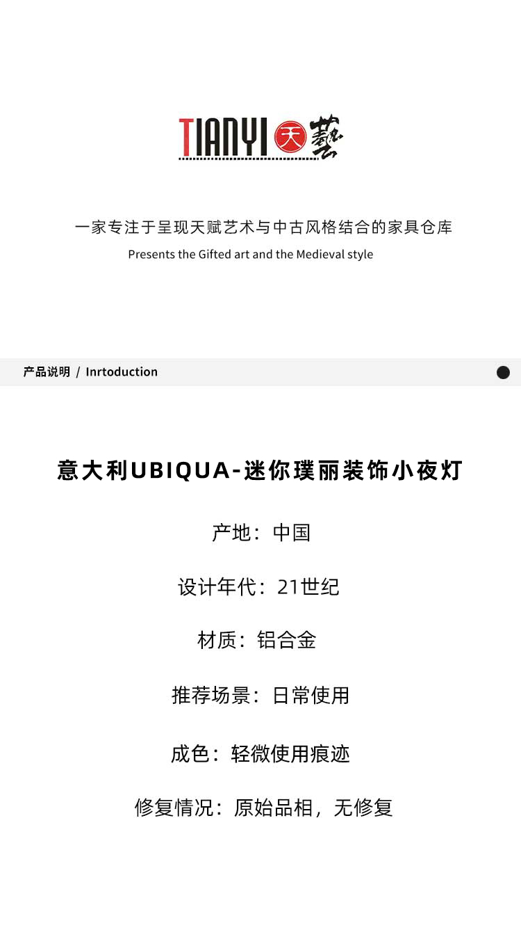 意大利品牌璞丽迷你台灯床头卧室装饰小夜灯4.5*21cm