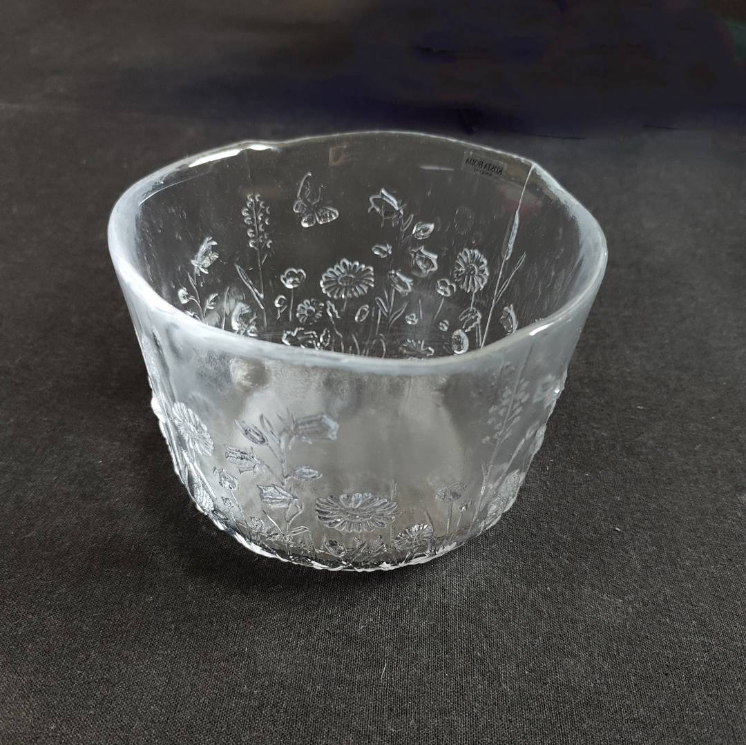品牌是 KOSTA BODA ,这是瑞典著名的水晶玻璃品牌 ,“SINCE 1742” 表明该品牌自 1742 年创立,体现其历史传承 ,玻璃盘上还有花卉雕刻图案 。