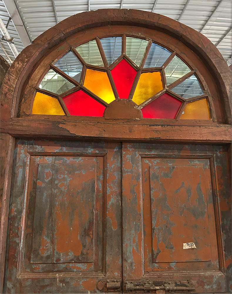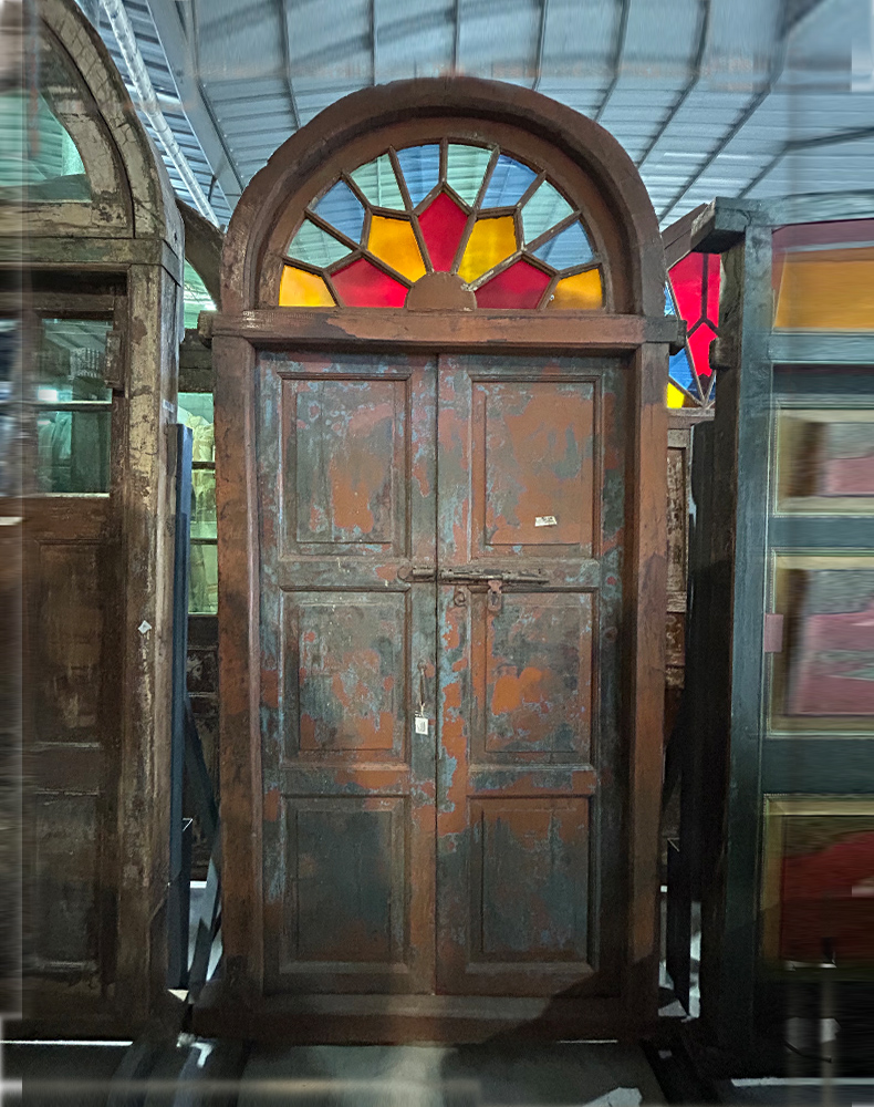 材质:实木辅料:铁+琉璃门外框长:123cm 厚:9.5cm 高:270.5cm 底部长:139cm门内框长:104cm 高:189cm