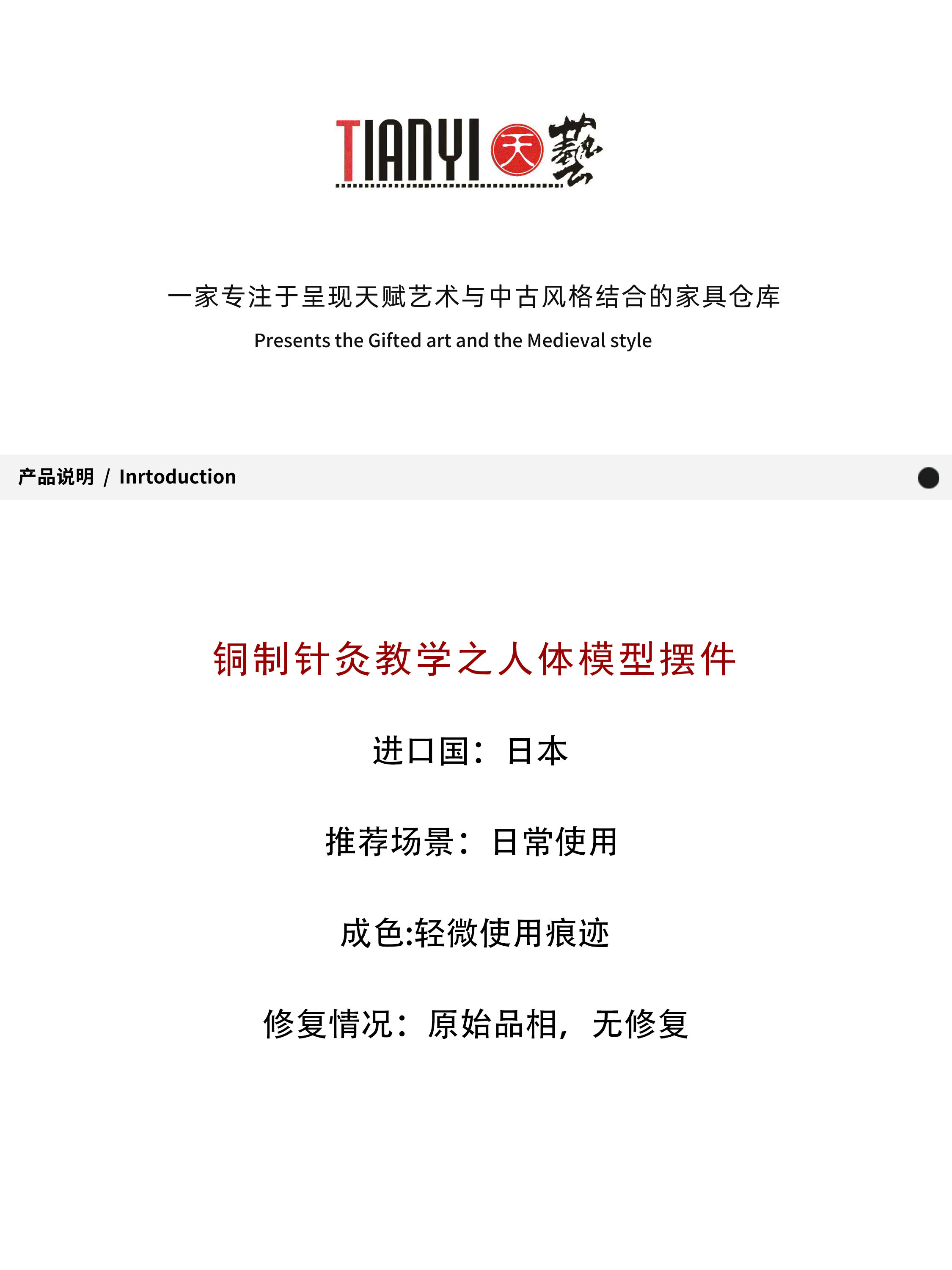 铜制针灸教学之人体模型摆件20*12*50cm