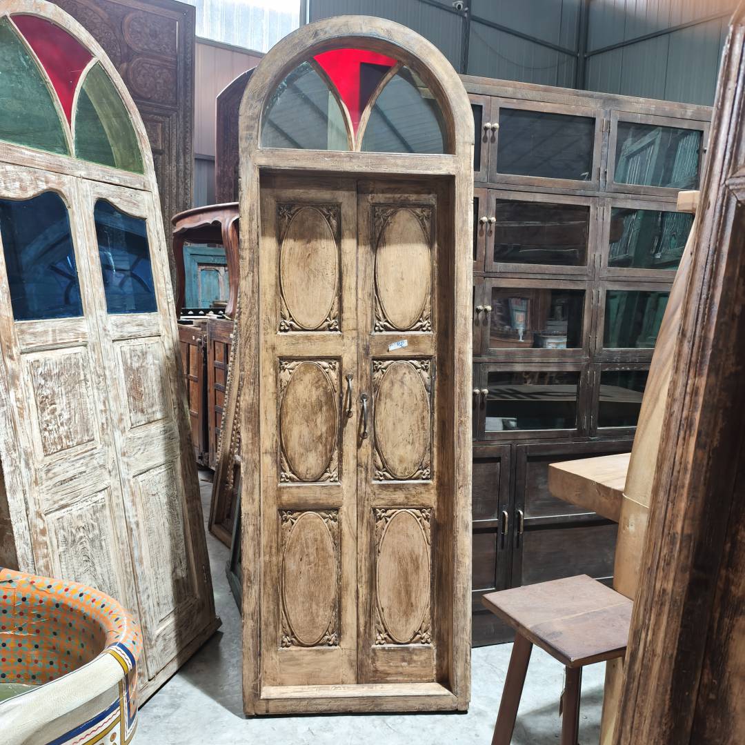 材质:实木辅料:铁+琉璃门外框长:83cm 厚:12cm 高:246cm 门内框长:69cm 高:186cm