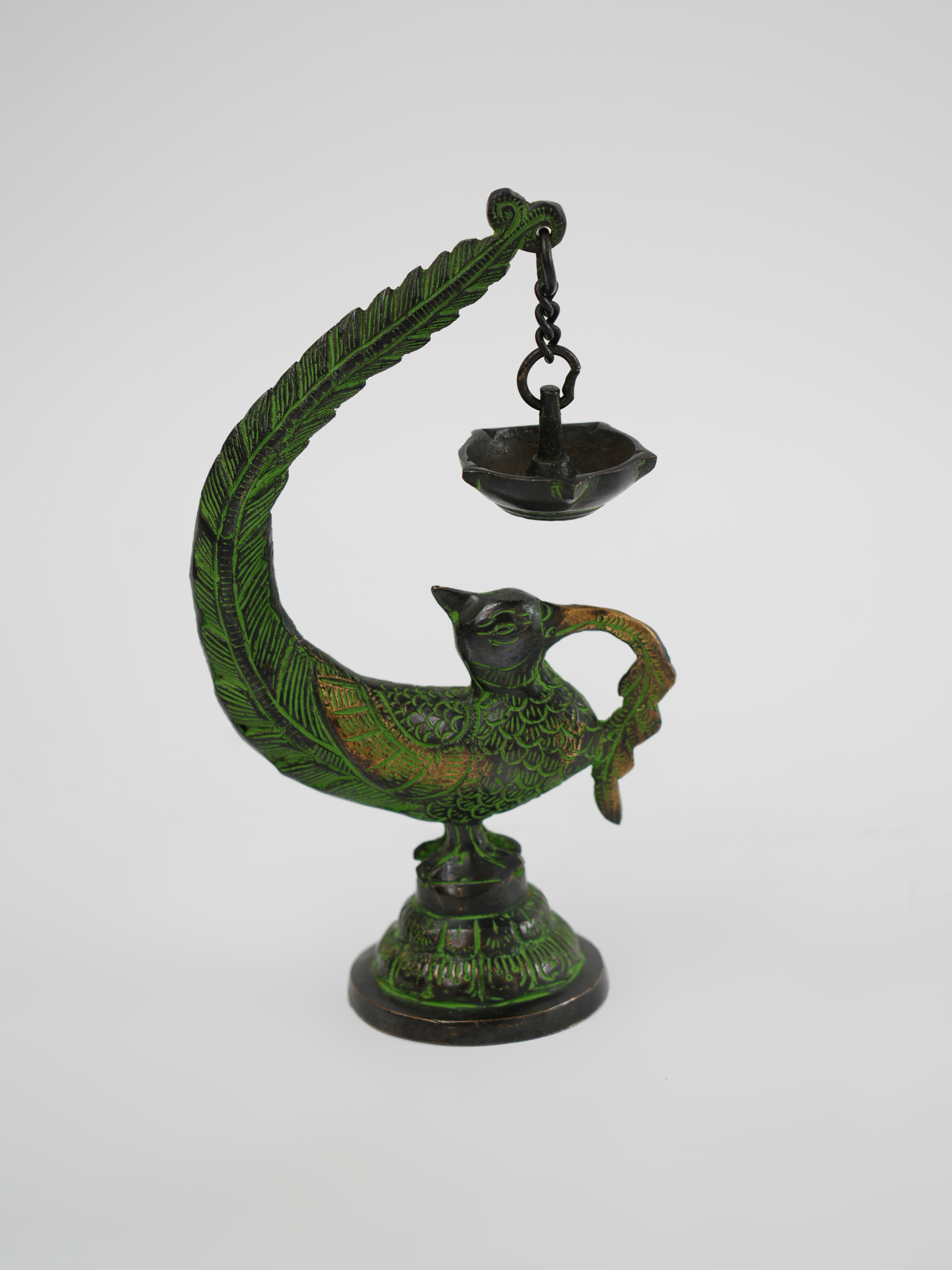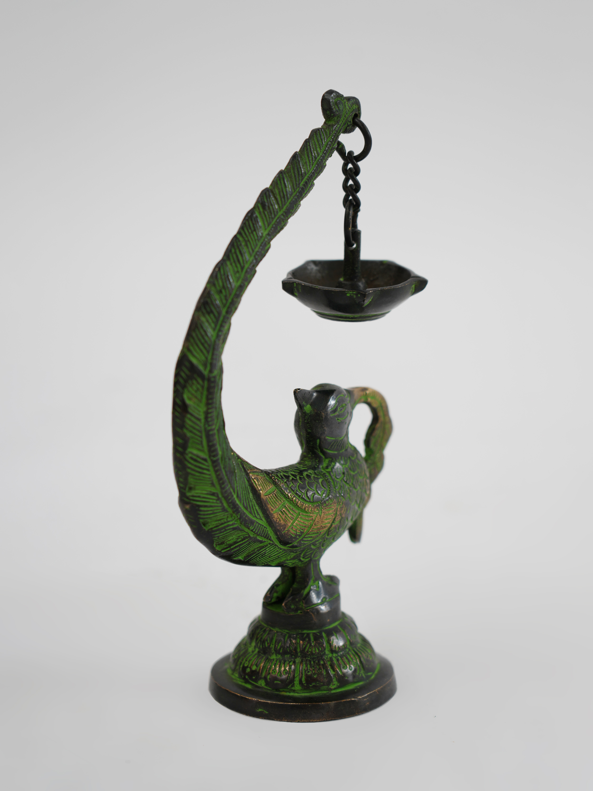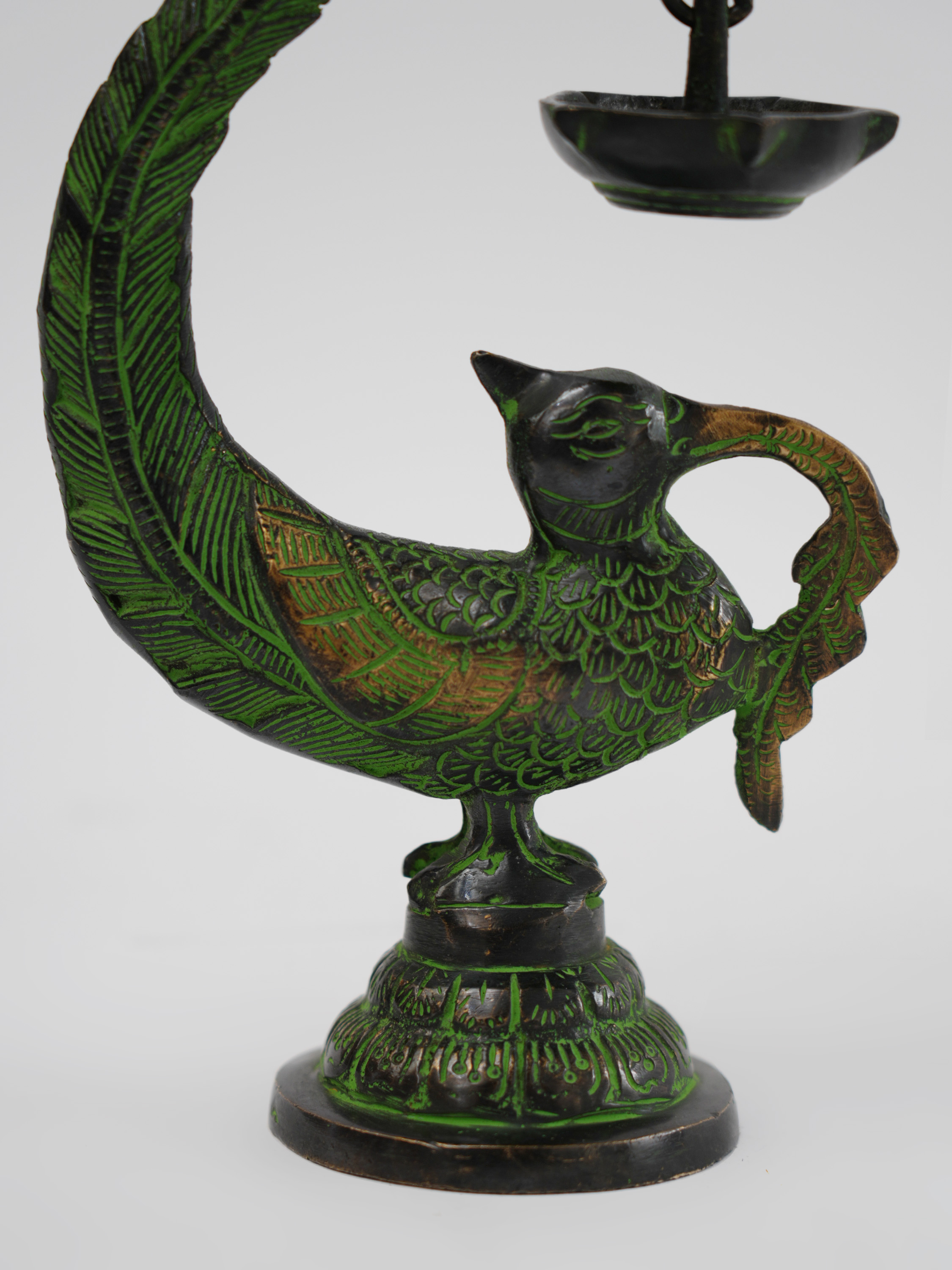 铜制孔雀油灯12*6.5*20.5cm