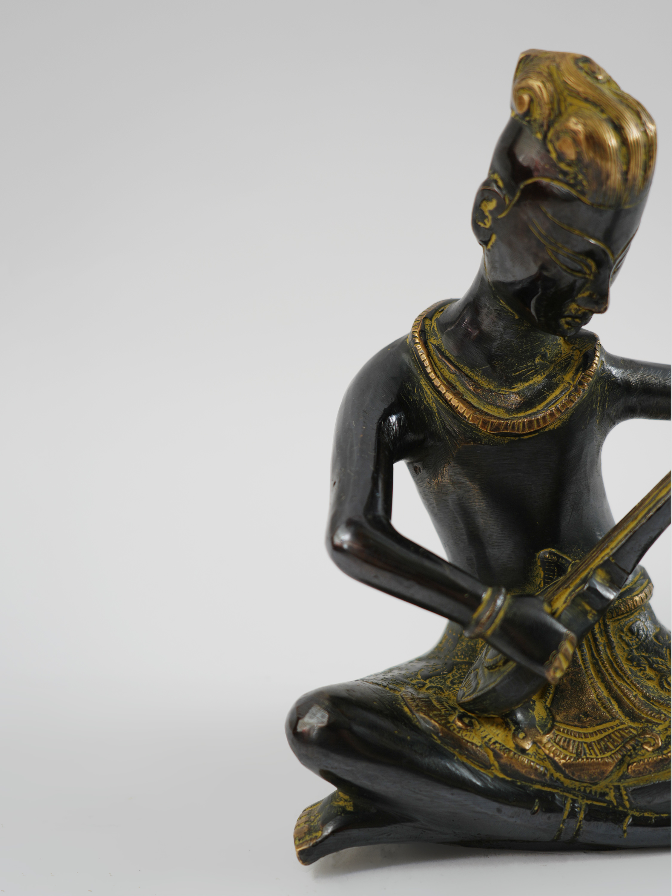 铜制音乐人摆件-弹西塔尔的人21*9*23.2cm