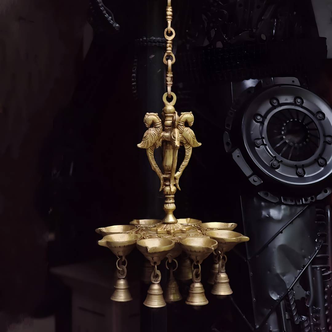 铜制挂饰油灯(孔雀)23*23*76cm