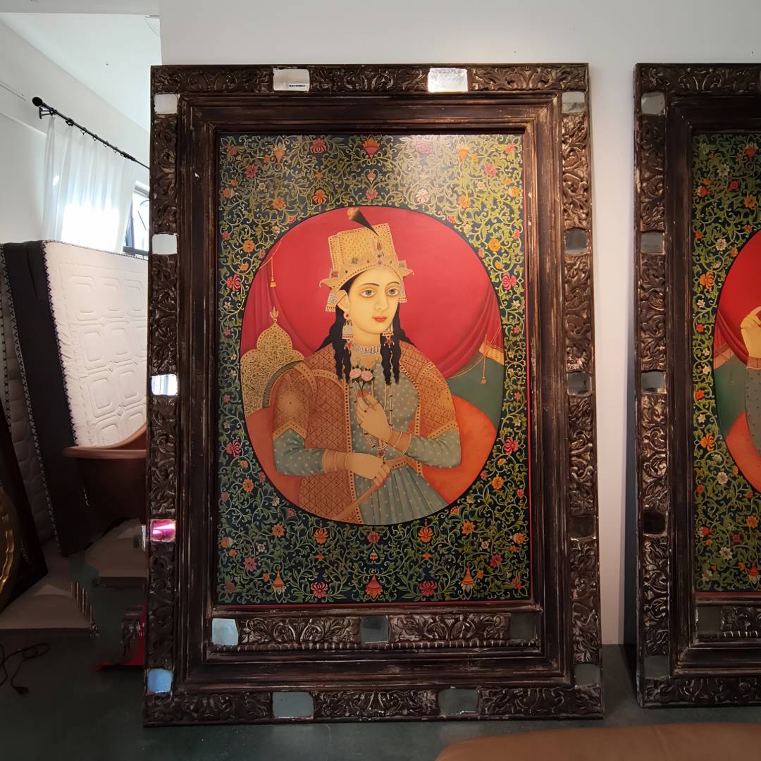印第安戴鹰羽冠的人牛皮手绘画挂饰