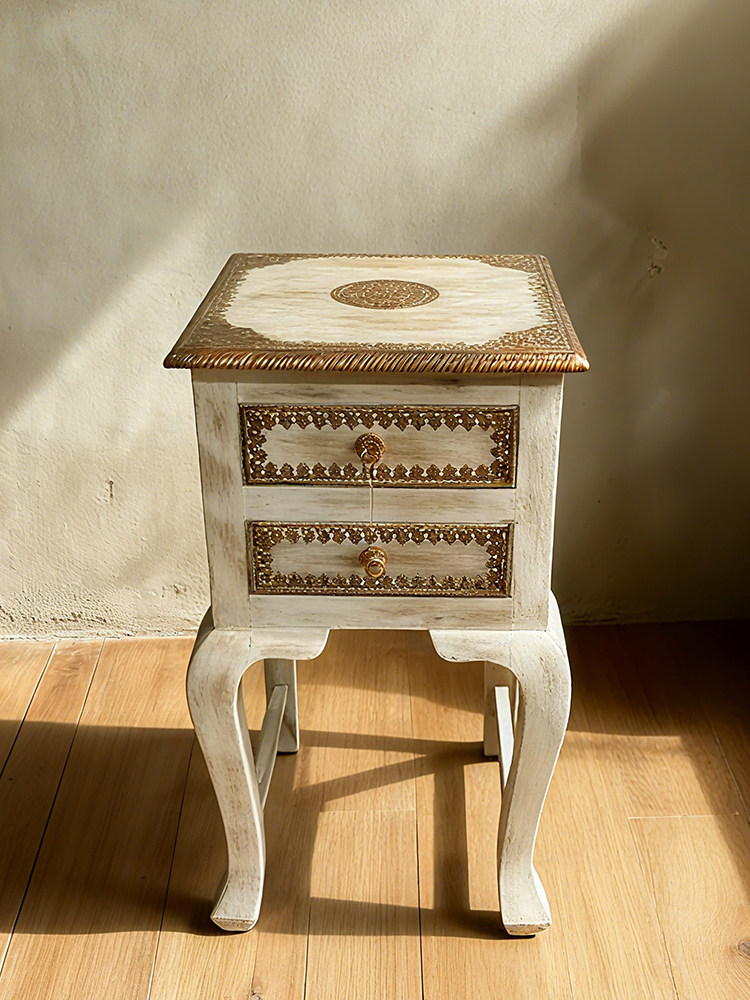 嵌铜片床头柜40*40*75cm