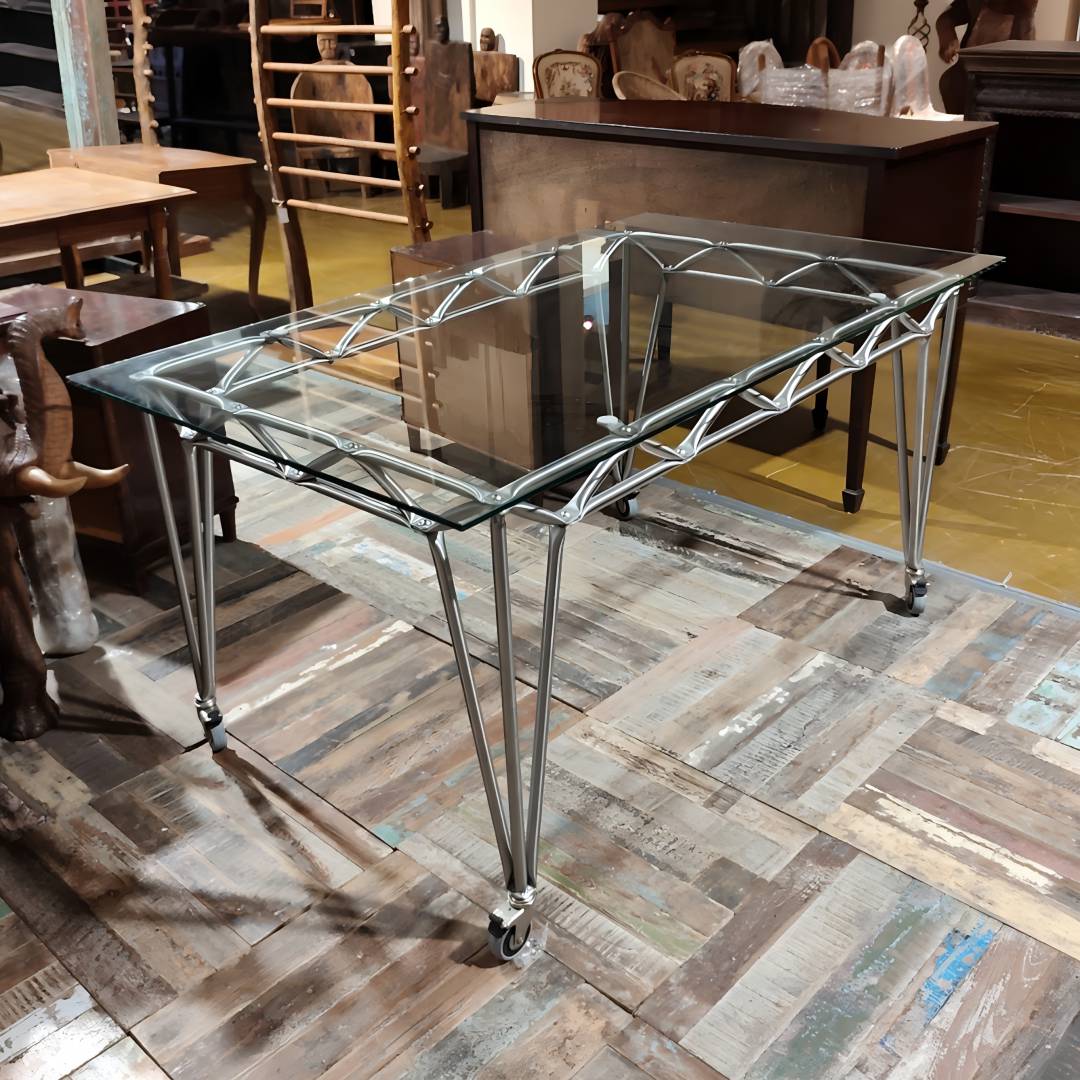 桥桌(2001)——荣获2001年iF设计奖。这款桥桌采用拉丝不锈钢框架,饰以建筑桁架细节,并配以斜边透明钢化玻璃桌面。设计兼顾优雅与实用性,配备四个工业级脚轮,并带有集成锁定系统,方便移动和稳固放置。