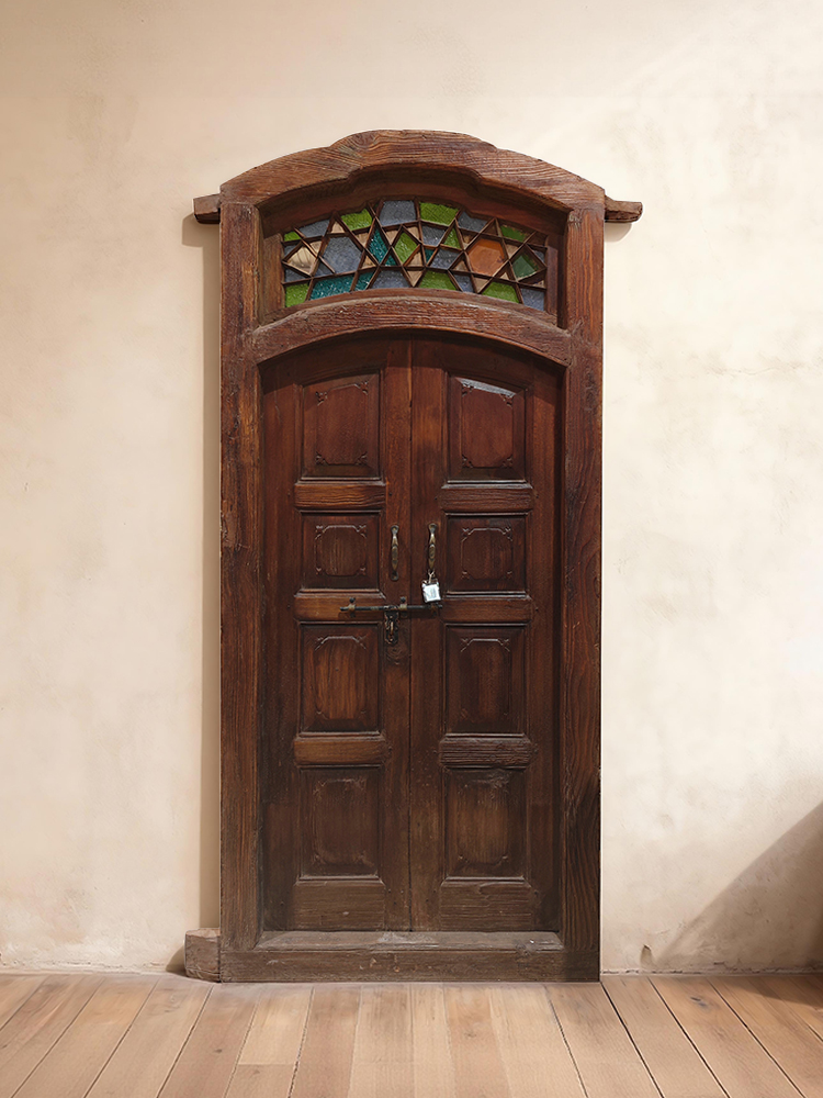 材质:实木辅料:铜铁+琉璃门外框长:100.5cm 厚:10.5cm 高:229cm 底部长:123cm门内框长:82cm 高:167cm