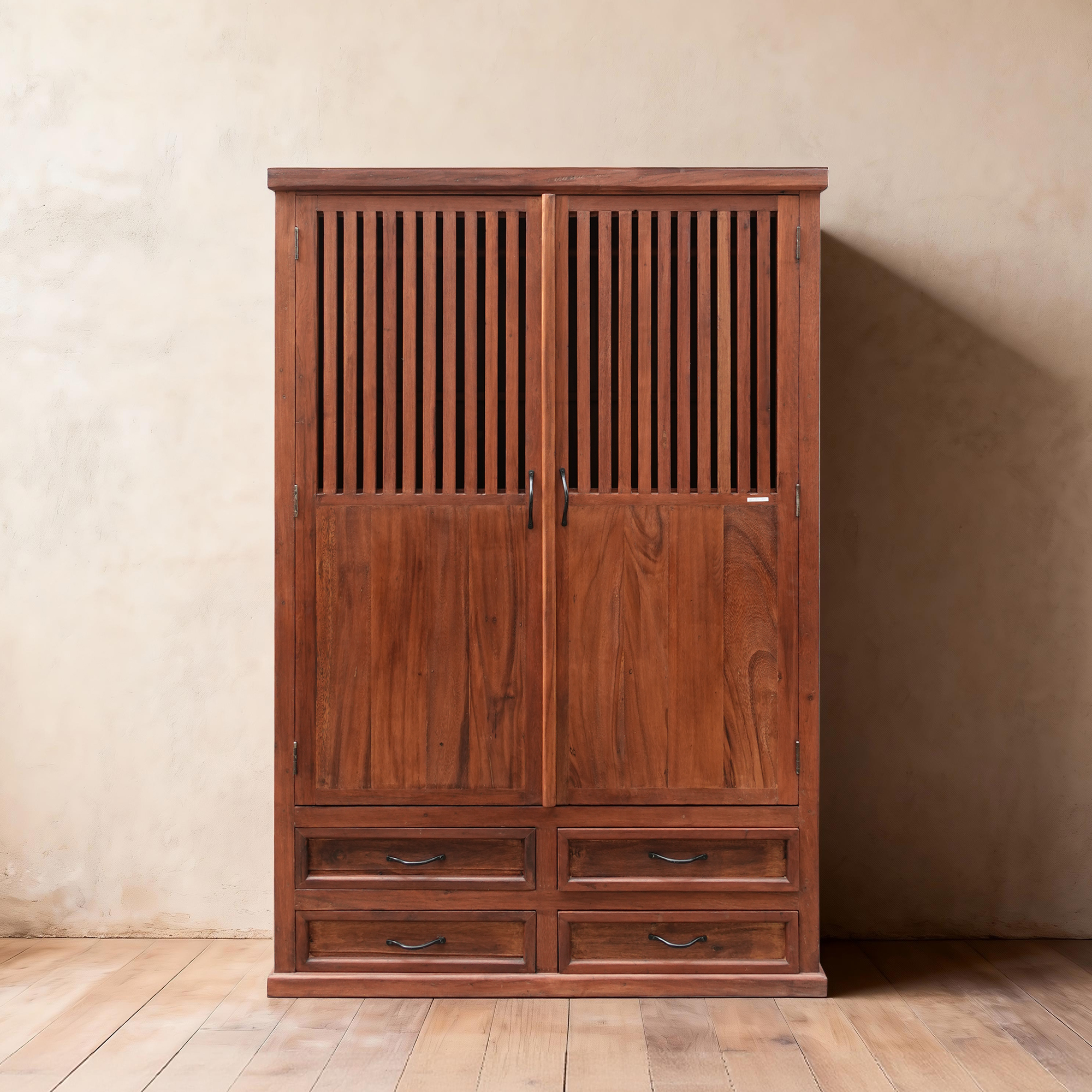 印度手工柚木柜子储物柜116*66*118cm
