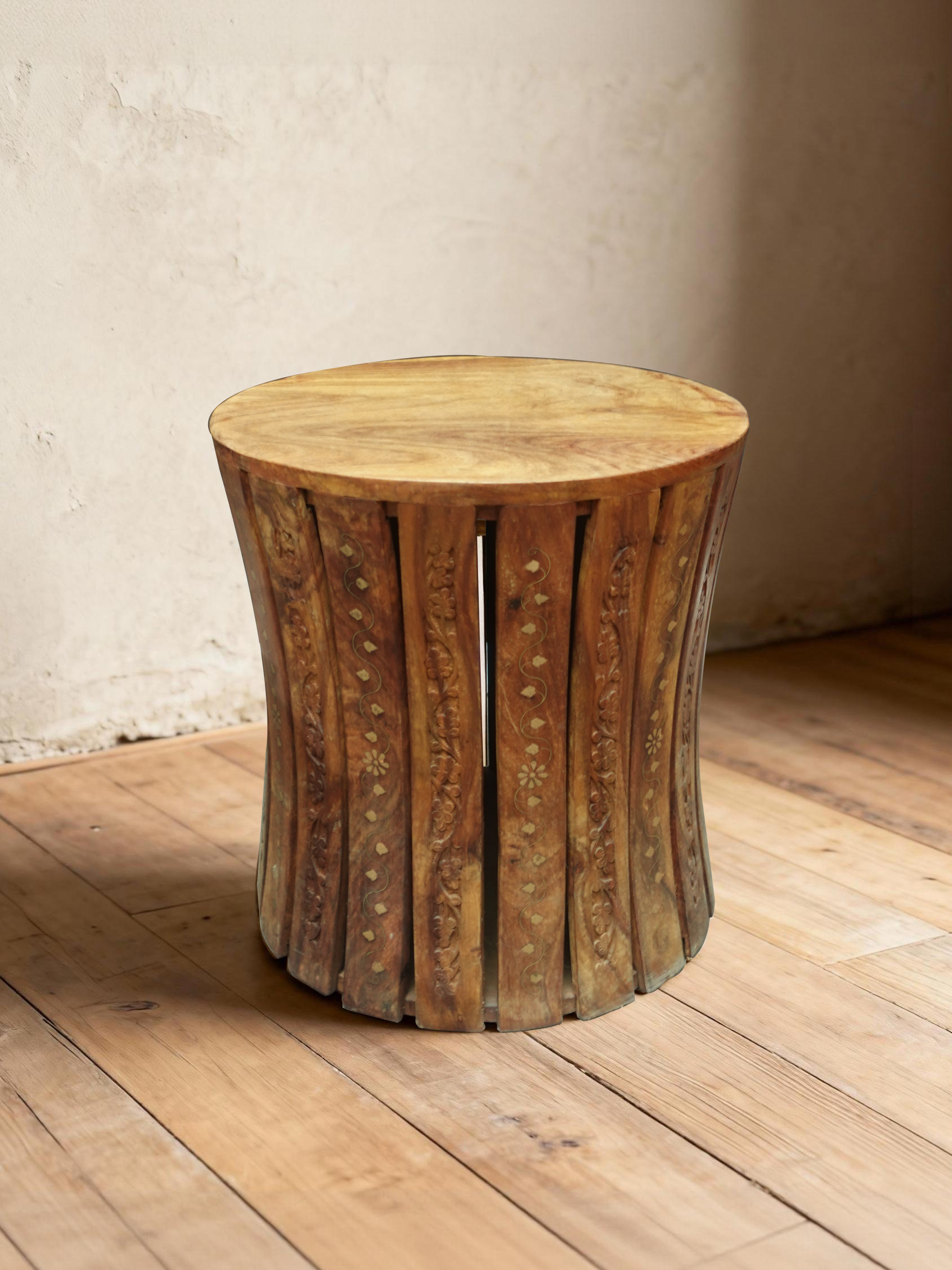 镶铜片酸枝木雕花圆凳35.5*37.5cm