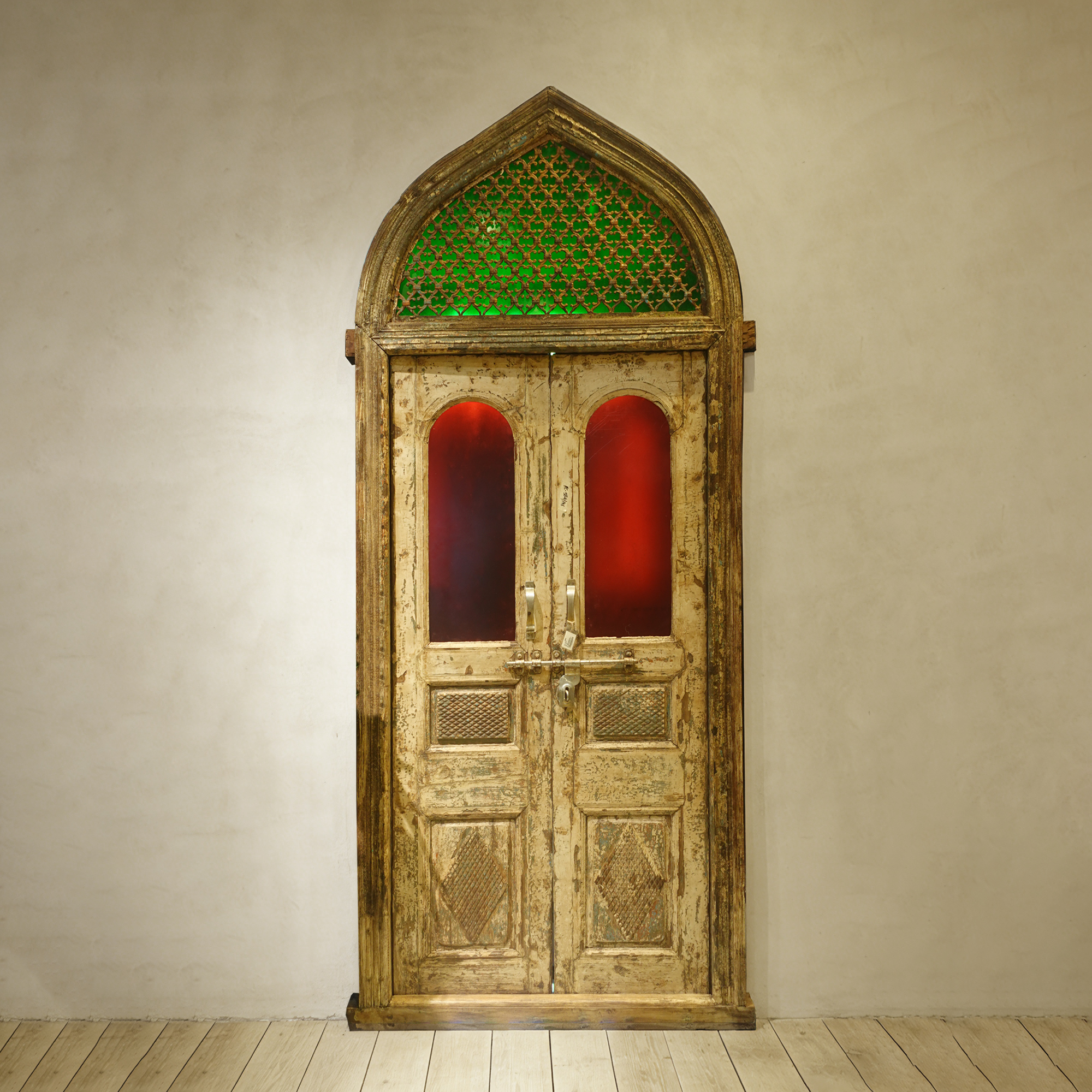 材质:实木辅料:铁+琉璃门外框长:101.5cm 厚:9cm 高:249cm 底部长:107.5cm门内框长:85cm 高:174cm