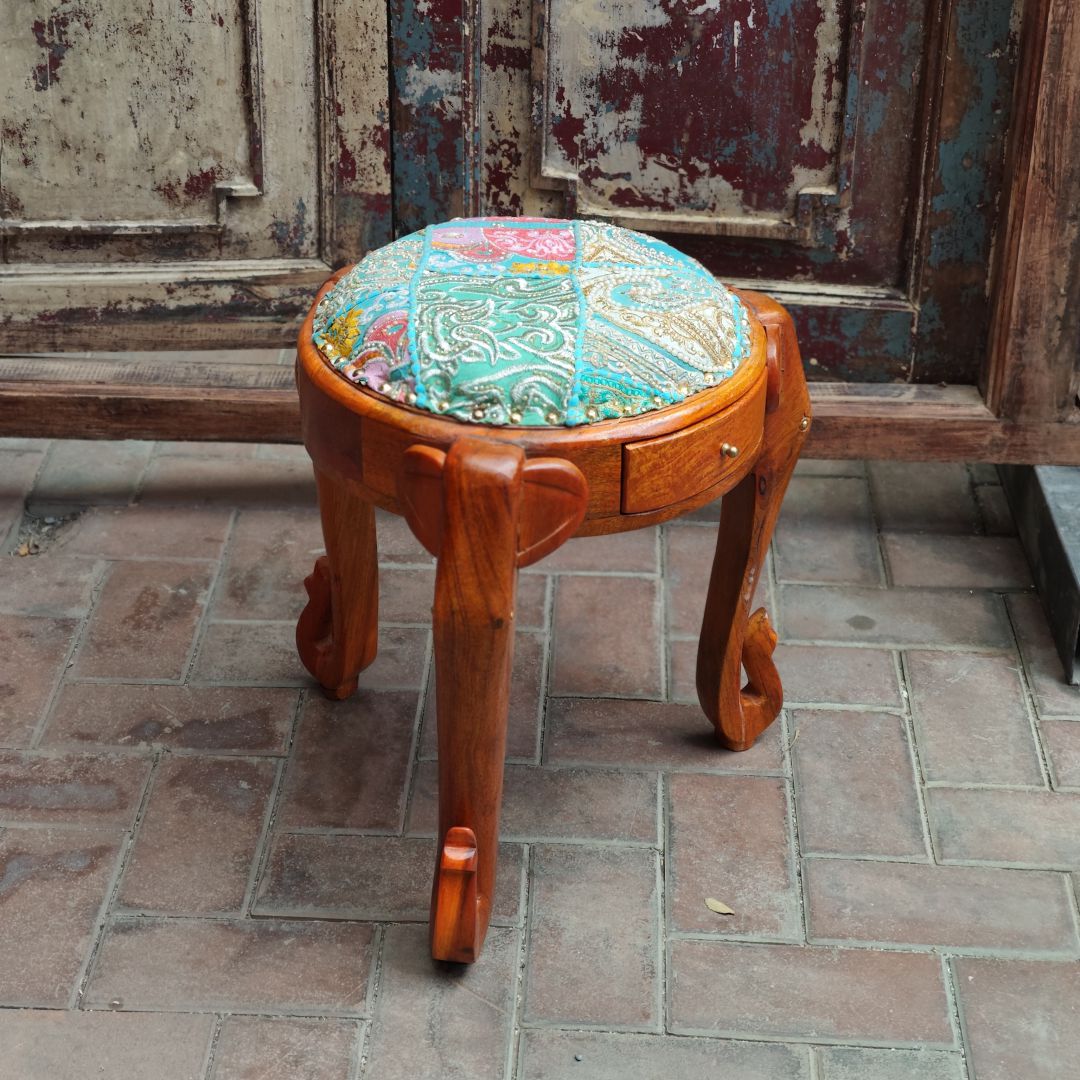 老绣片软垫象凳45*52cm