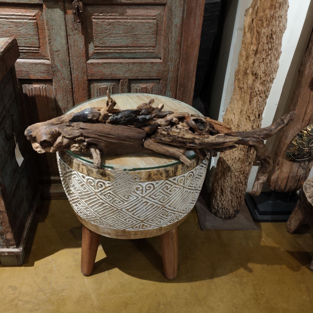 雕花木柱鹿头摆件52*32.5*252cm