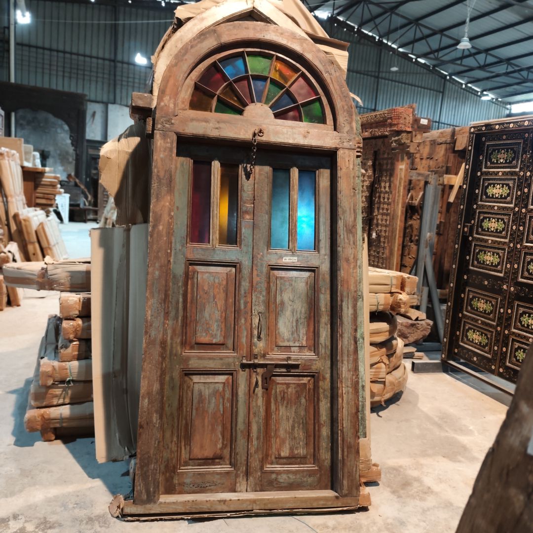 材质:实木辅料:铁+琉璃门外框长:111cm 厚:13cm 高:257.5cm 底部长:121cm门内框长:88cm 高:181cm