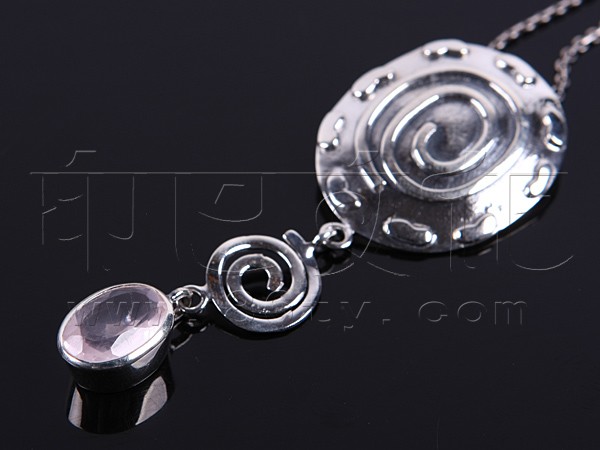 嵌粉晶银挂坠
