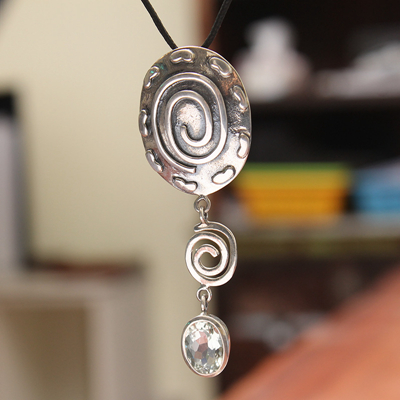 嵌托帕石银挂坠