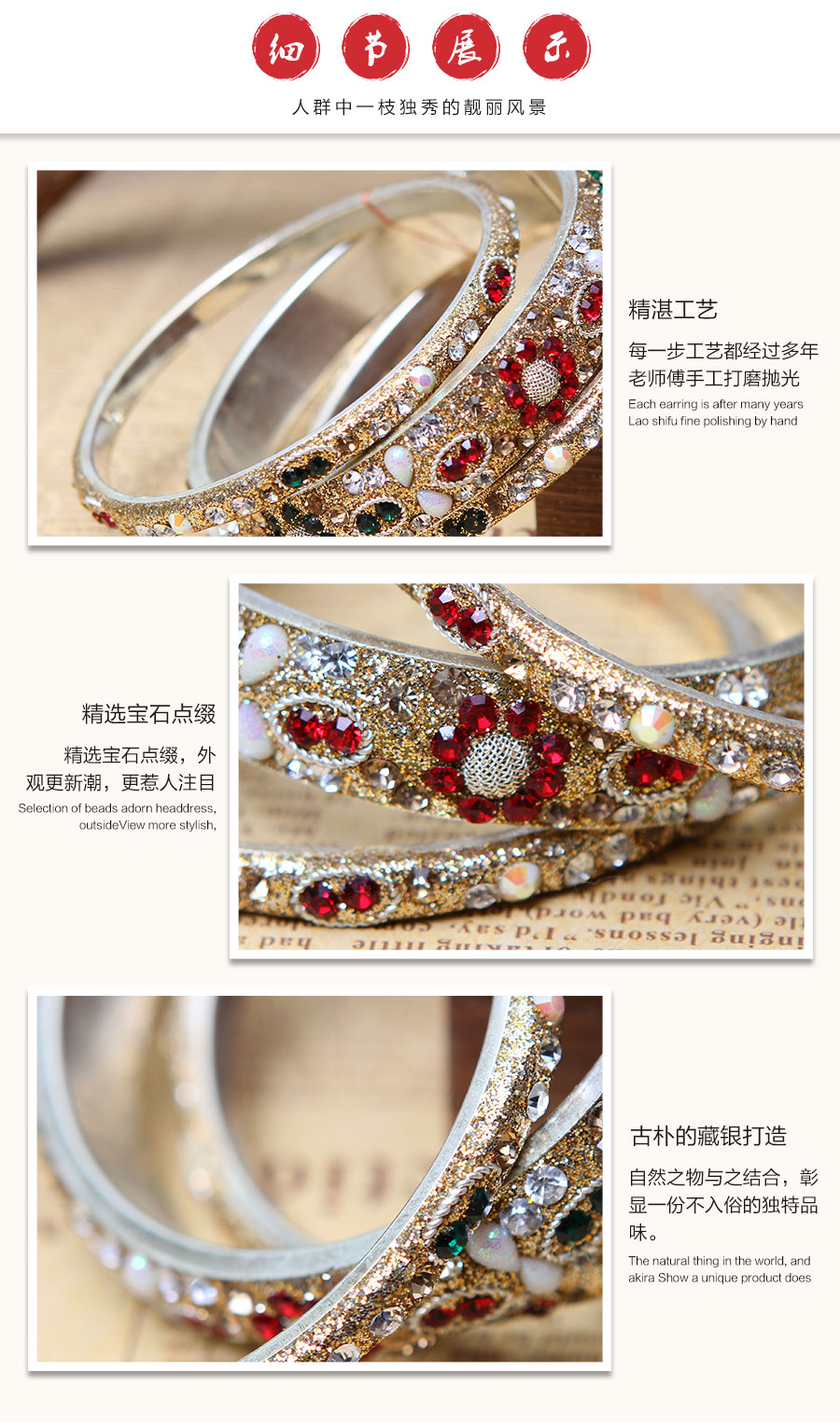 嵌仿宝石|刷金粉