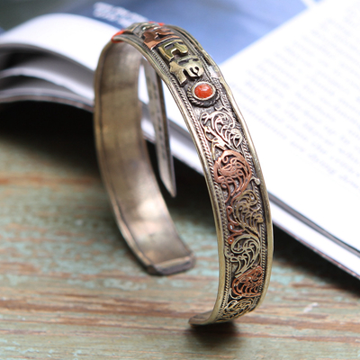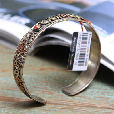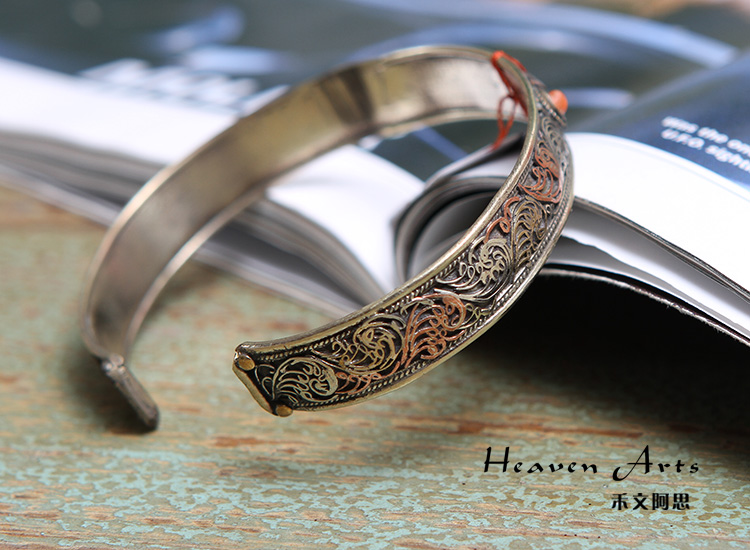 三色铜镶五石手镯
