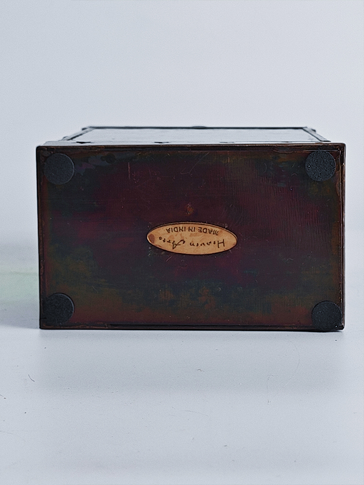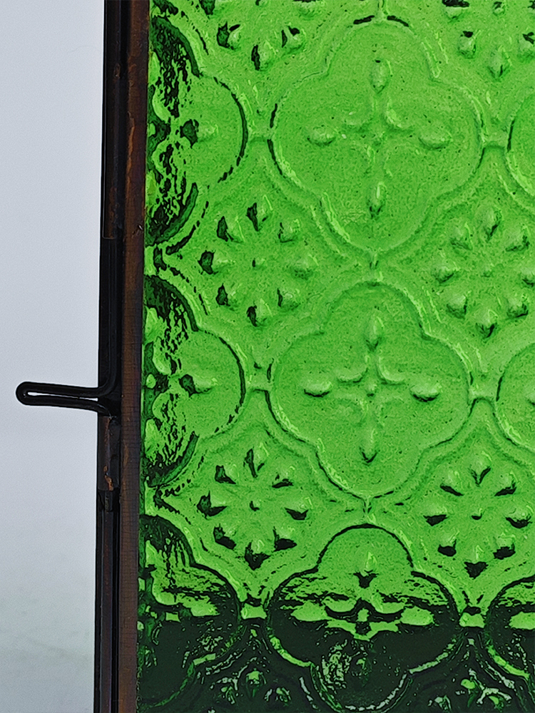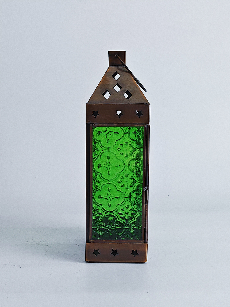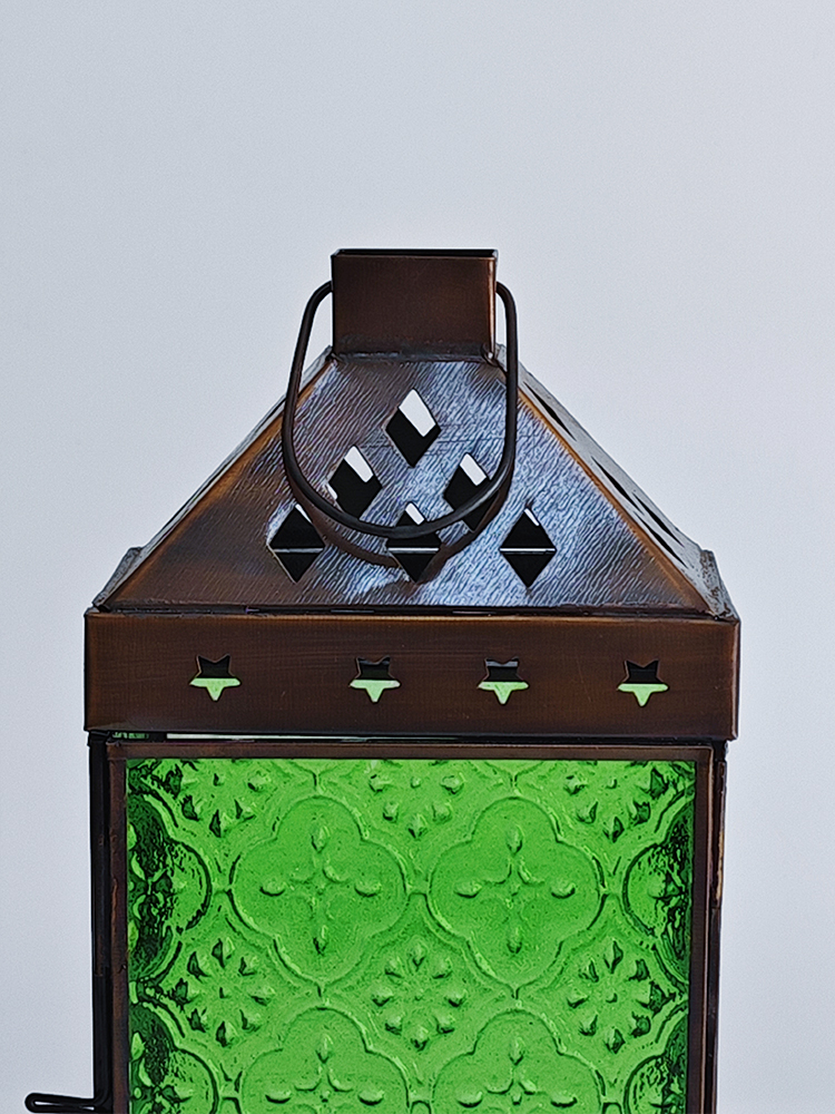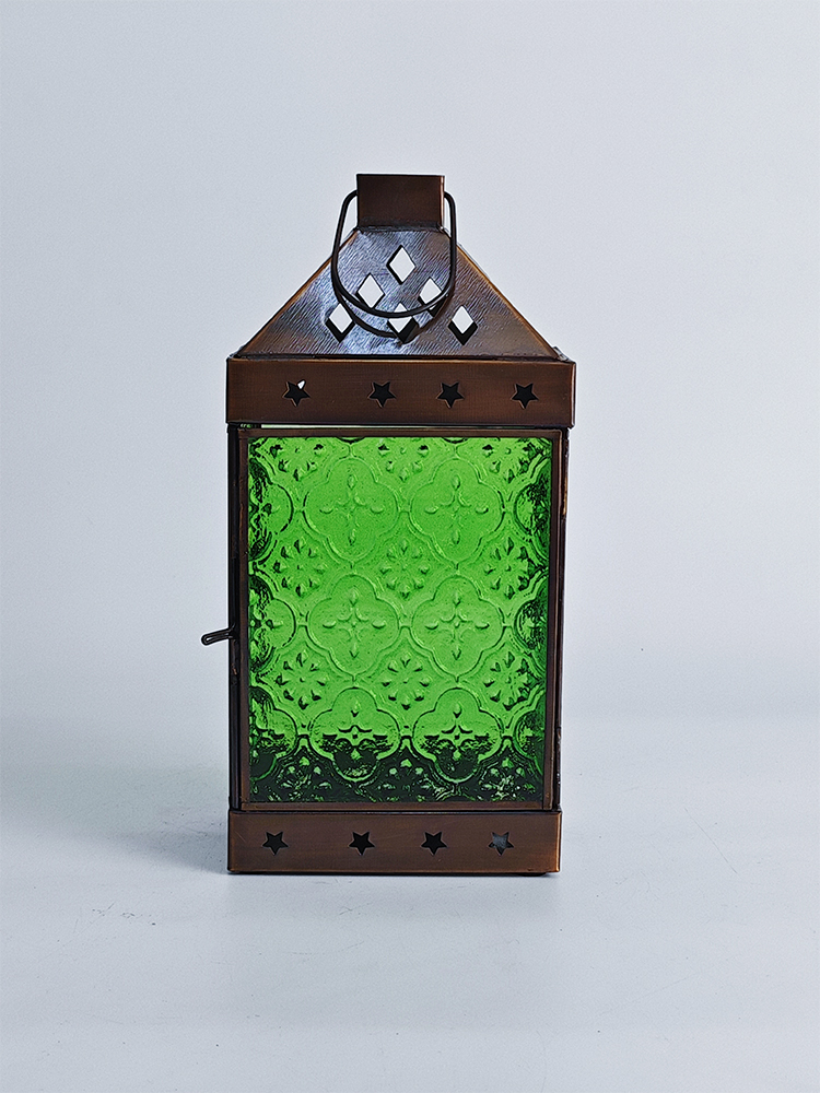 铜巧妙结合的此款印度灯罩,洋溢着浓郁的异国情调。点亮灯光之时,光线自清新自然的绿色灯罩中缓缓洒向四周,营造一隅的无尽浪漫。以铜为框架的灯罩,绿色琉璃上雕琢清雅的花纹图案,搭配底座与顶盖上镂空雕刻五角星、格子图案,使本就美观的琉璃灯罩越发浪漫动人。