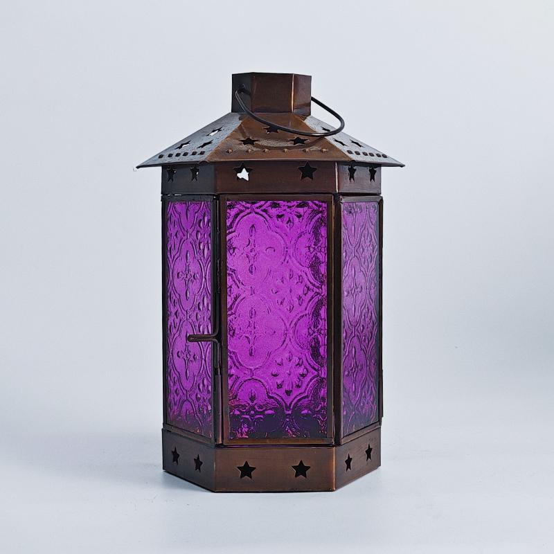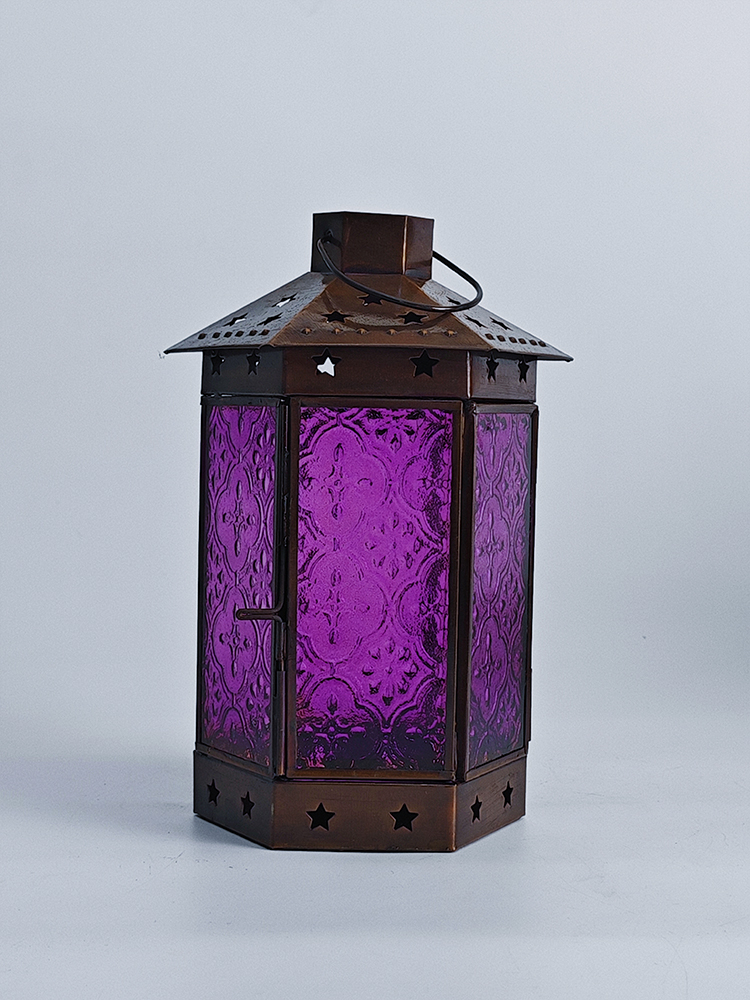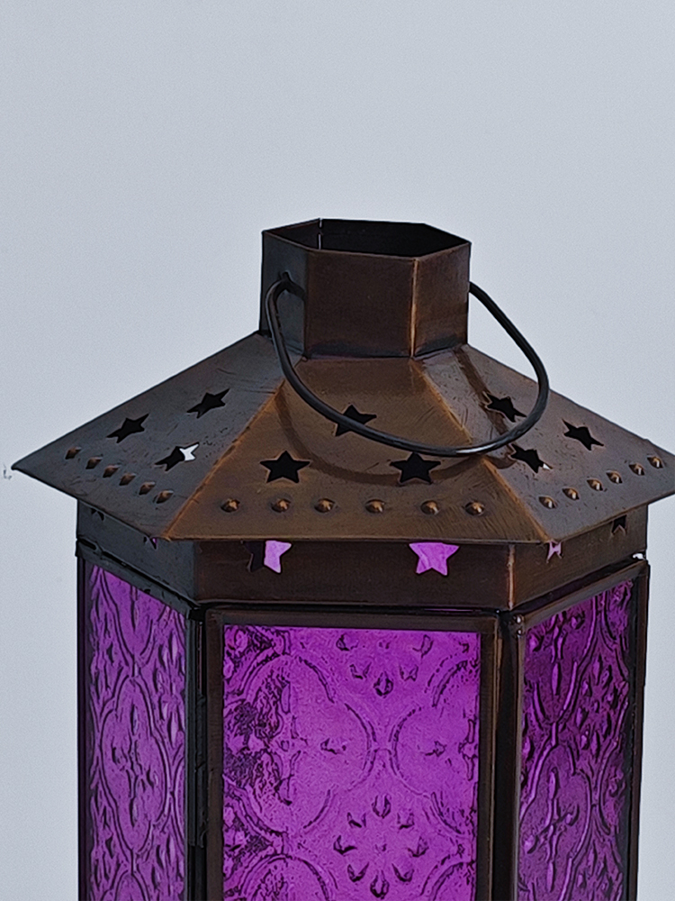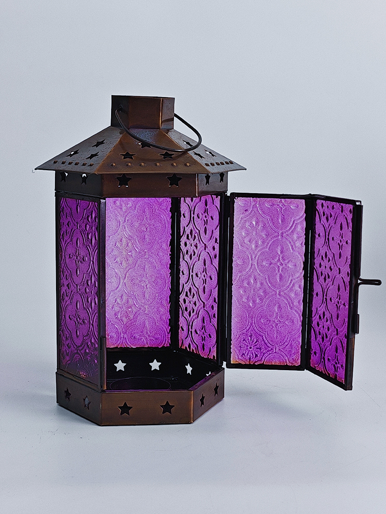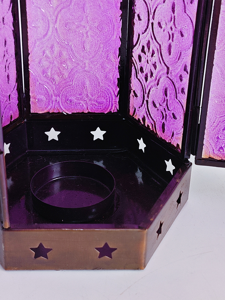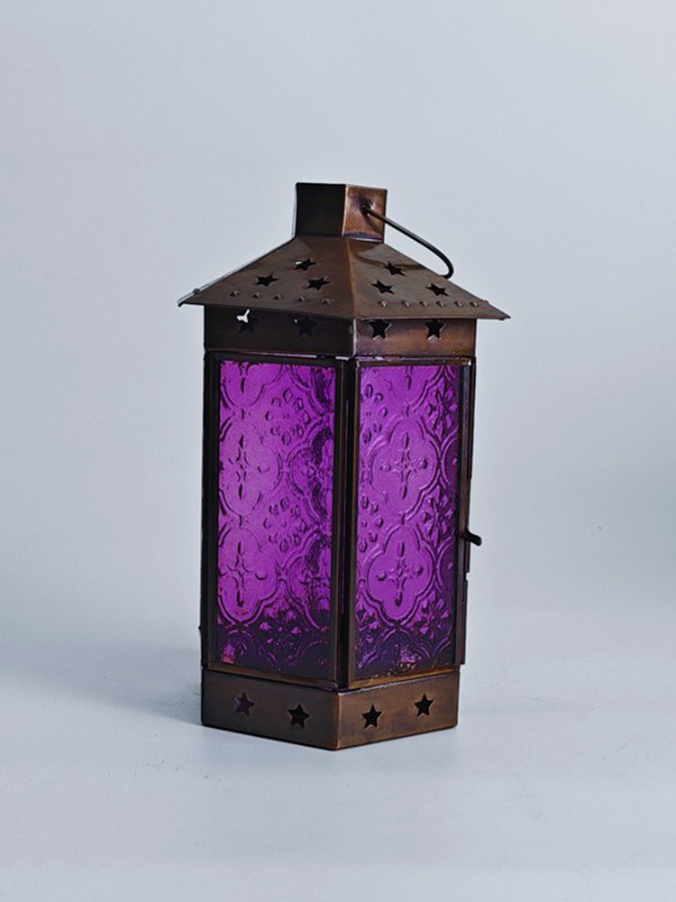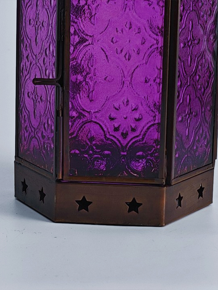一个好的灯饰,能让居室氛围焕然生辉,平添几分温馨与情趣。以琉璃制作的灯罩,有着如霓虹般艳丽多姿的色调,更是点缀气氛的绝佳选择。将琉璃与铜巧妙结合的此款印度灯罩,洋溢着浓郁的异国情调。点亮灯光之时,神秘浪漫的紫色缓缓洒向四周,营造一隅的无尽浪漫。以铜为框架的灯罩,紫色琉璃上雕琢清雅的花纹图案,搭配底座与顶盖上镂空雕刻五角星,使本就美观的琉璃灯罩越发浪漫动人。