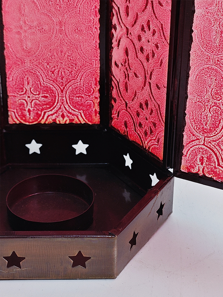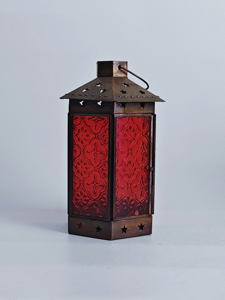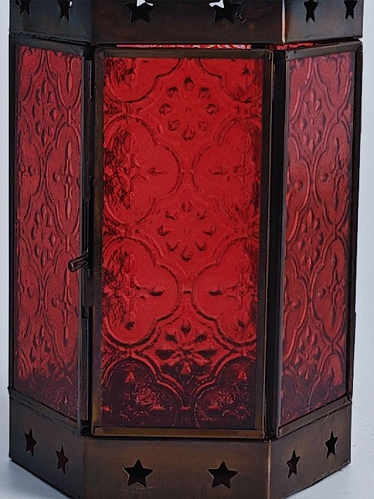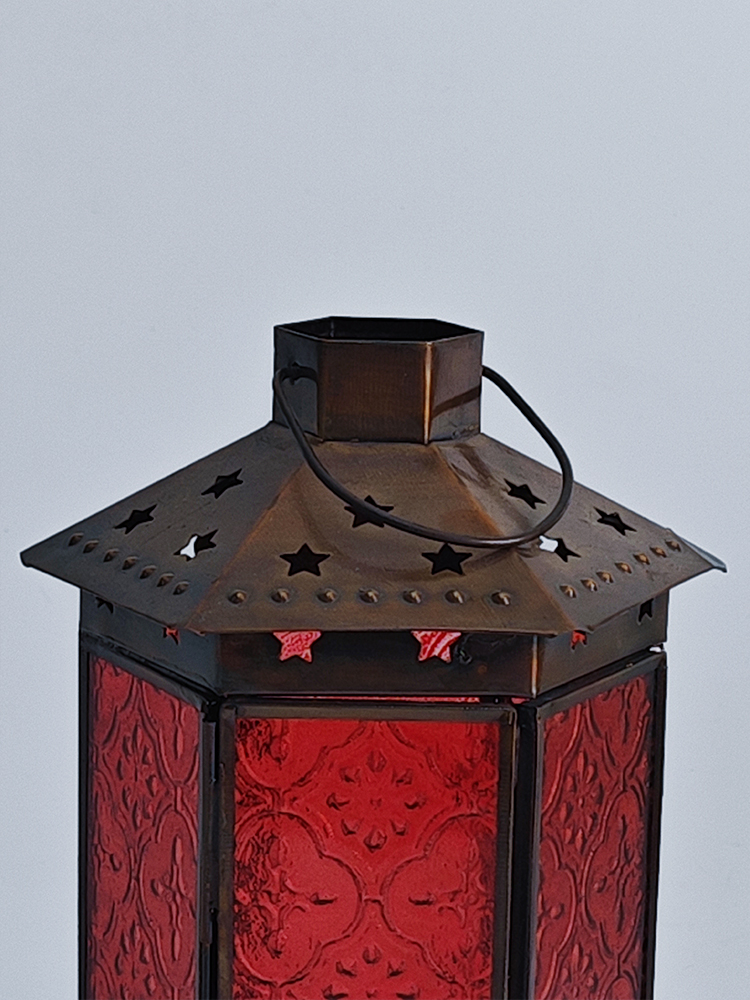 一个好的灯饰,能让居室氛围焕然生辉,平添几分温馨与情趣。以琉璃制作的灯罩,有着如霓虹般艳丽多姿的色调,更是点缀气氛的绝佳选择。将琉璃与铜巧妙结合的此款印度灯罩,洋溢着浓郁的异国情调。点亮灯光之时,光线自热情艳丽的红色灯罩中缓缓洒向四周,营造一隅的无尽浪漫。以铜为框架的灯罩,红色琉璃上雕琢清雅的花纹图案,搭配底座与顶盖上镂空雕刻五角星,使本就美观的琉璃灯罩越发浪漫动人。