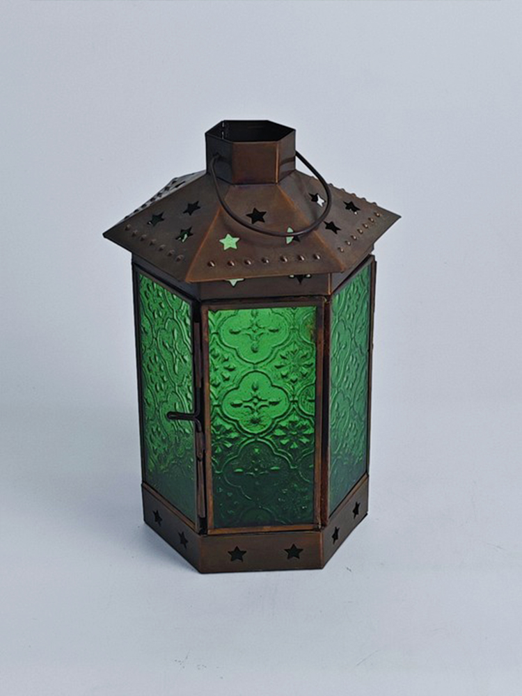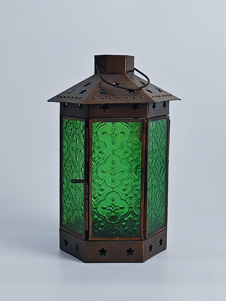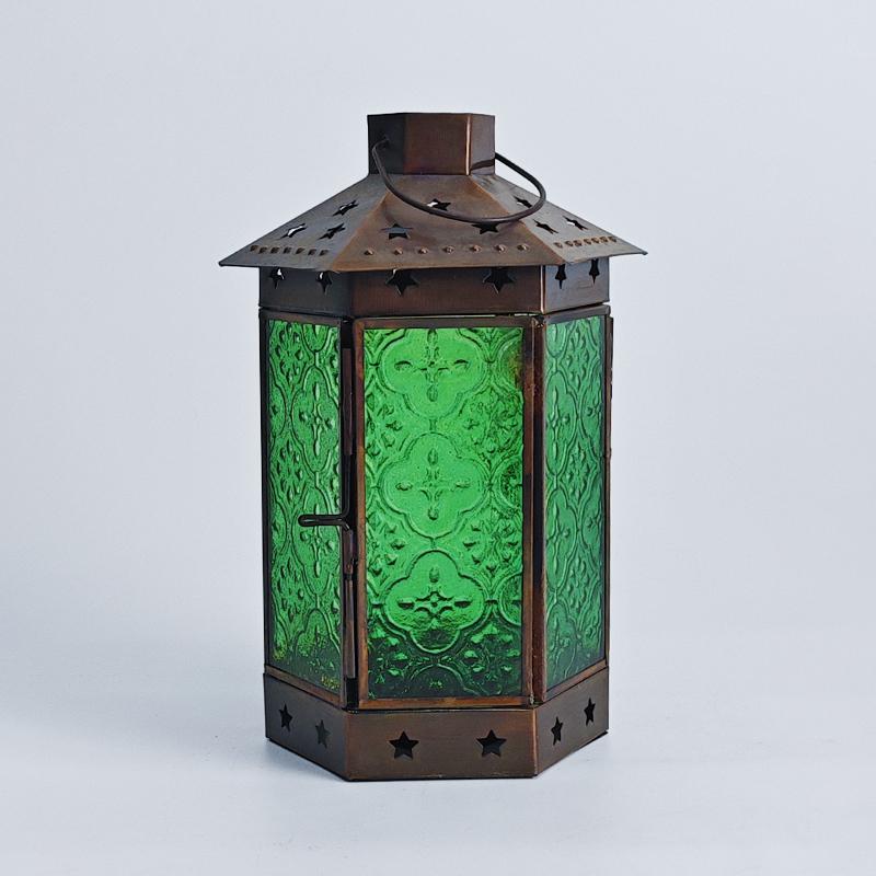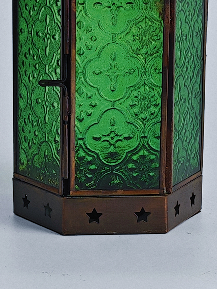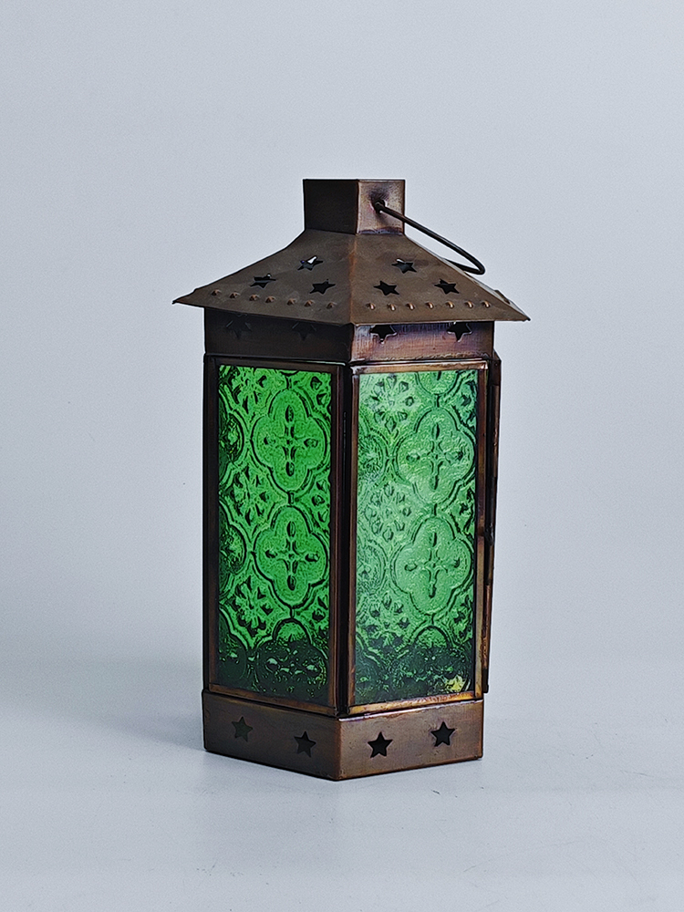 一个好的灯饰,能让居室氛围焕然生辉,平添几分温馨与情趣。以琉璃制作的灯罩,有着如霓虹般艳丽多姿的色调,更是点缀气氛的绝佳选择。将琉璃与铜巧妙结合的此款印度灯罩,洋溢着浓郁的异国情调。点亮灯光之时,光线自清新自然的绿色灯罩中缓缓洒向四周,营造一隅的无尽浪漫。以铜为框架的灯罩,绿色琉璃上雕琢清雅的花纹图案,搭配底座与顶盖上镂空雕刻五角星,使本就美观的琉璃灯罩越发浪漫动人。