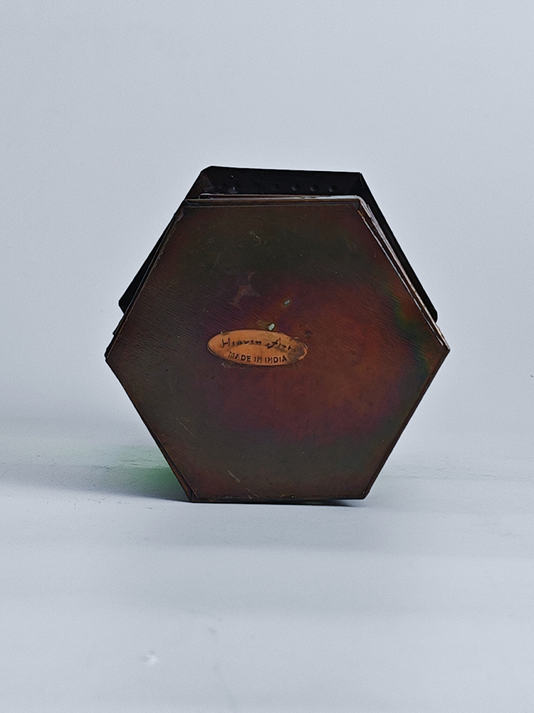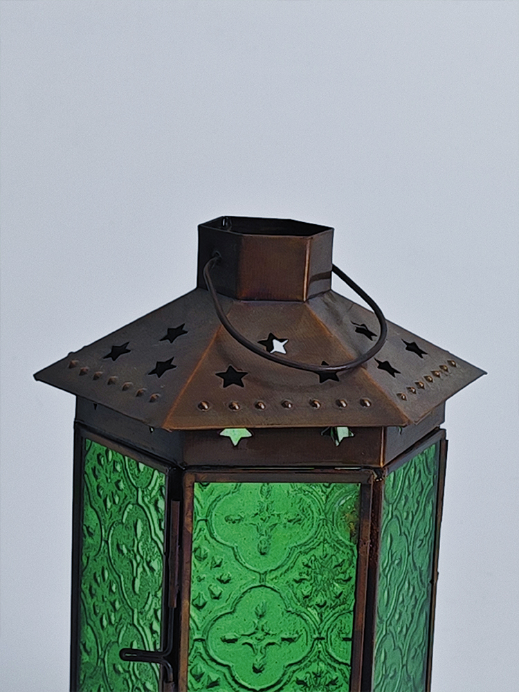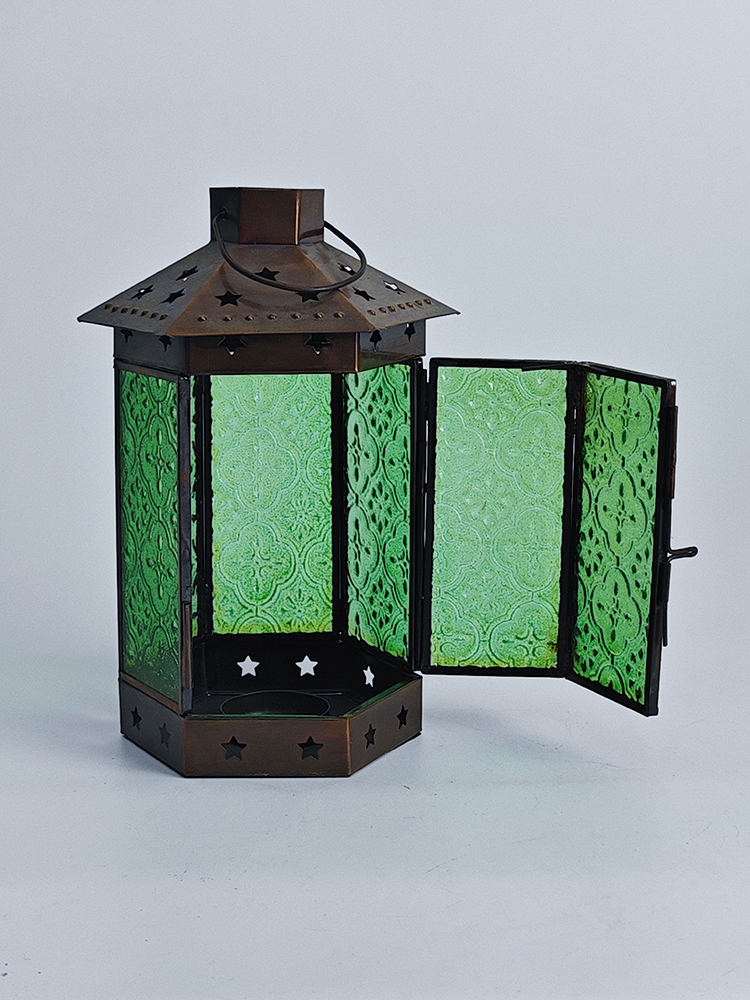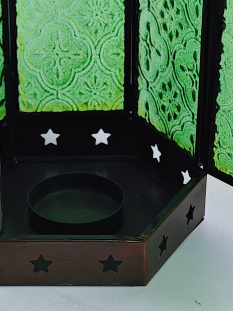 一个好的灯饰,能让居室氛围焕然生辉,平添几分温馨与情趣。以琉璃制作的灯罩,有着如霓虹般艳丽多姿的色调,更是点缀气氛的绝佳选择。将琉璃与铜巧妙结合的此款印度灯罩,洋溢着浓郁的异国情调。点亮灯光之时,光线自清新自然的绿色灯罩中缓缓洒向四周,营造一隅的无尽浪漫。以铜为框架的灯罩,绿色琉璃上雕琢清雅的花纹图案,搭配底座与顶盖上镂空雕刻五角星,使本就美观的琉璃灯罩越发浪漫动人。