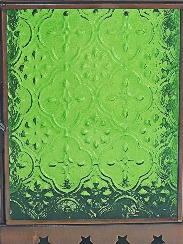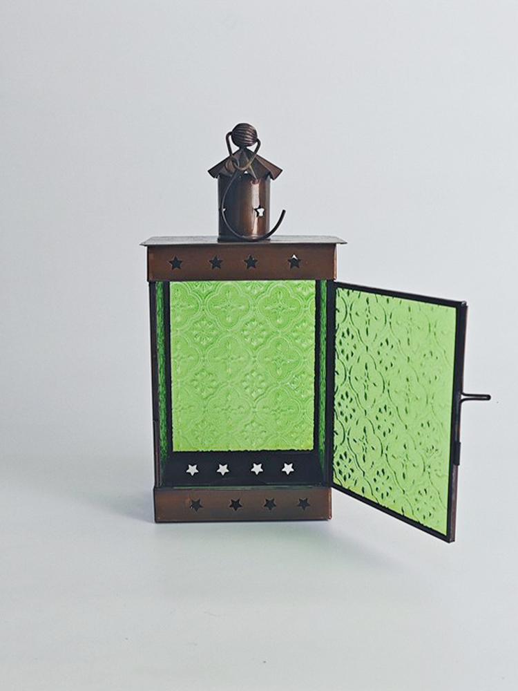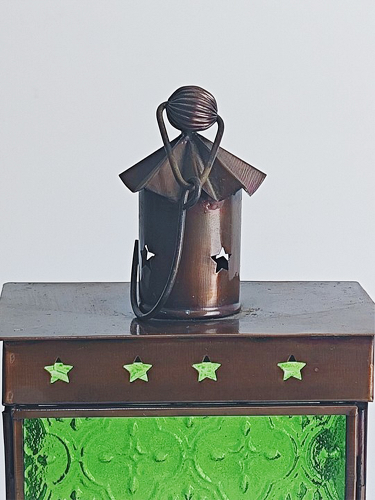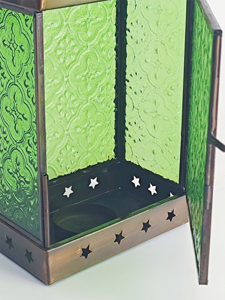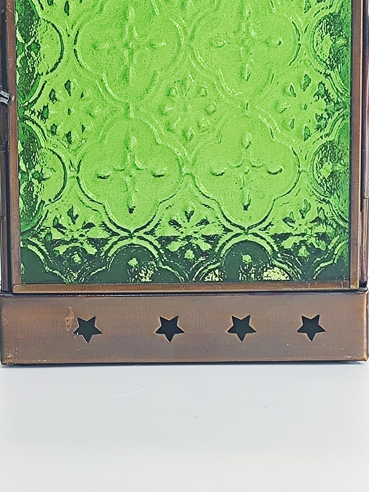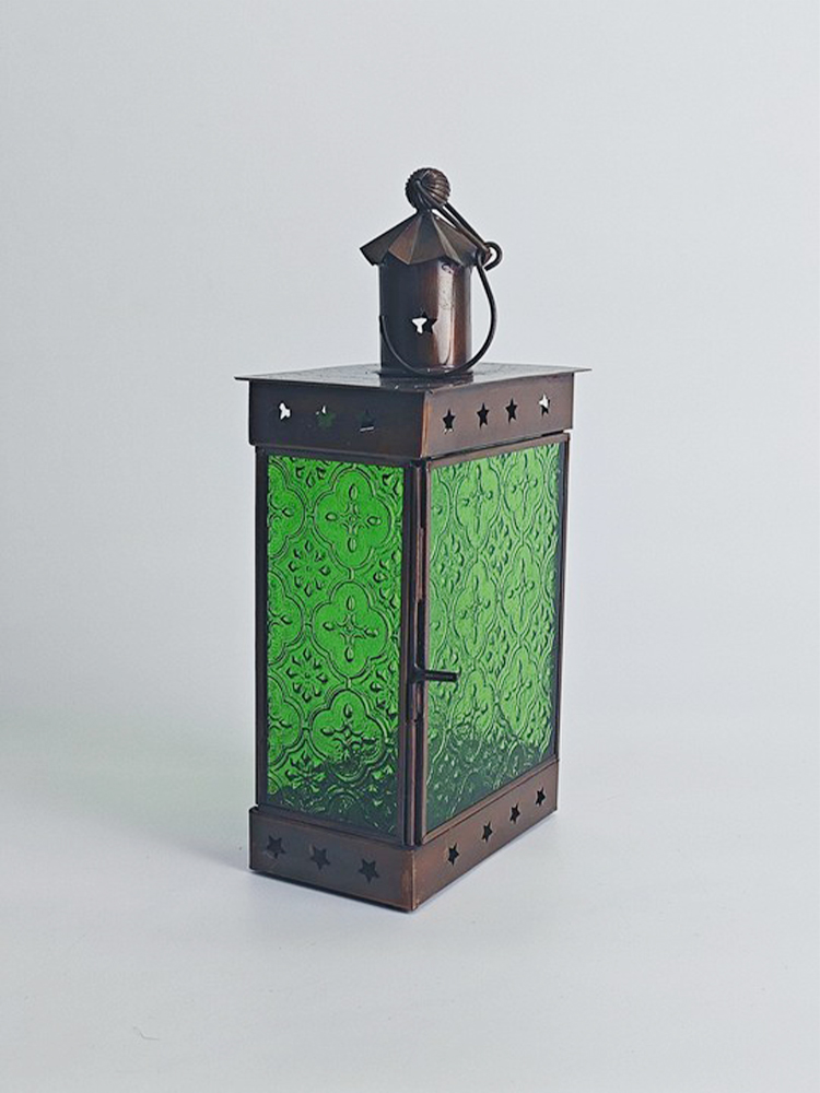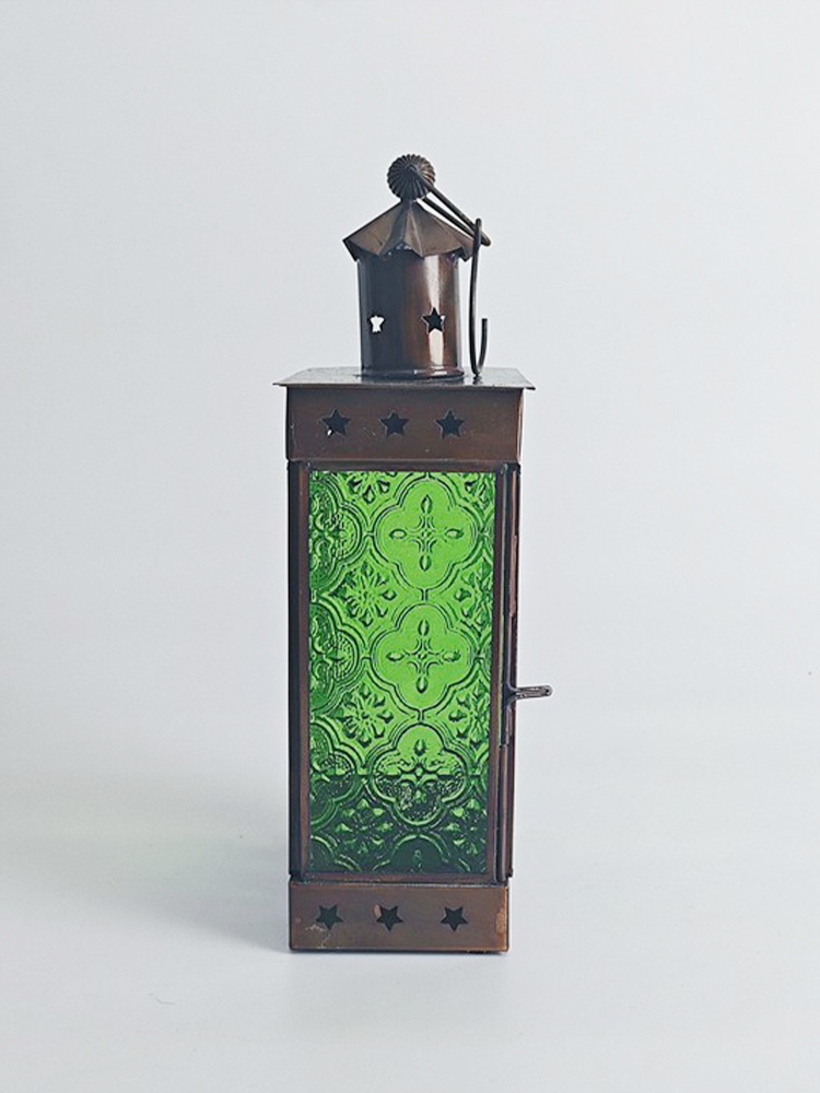 琉璃色彩幻美,质地透而冰凉,透出一种意味深长的优雅意境,由其镶嵌的灯罩散发着古老而浪漫的民族风情。以铜为胚料赋予灯罩金属质感,哑哑光泽中方形灯罩上镂空雕刻简约美观的五角星,搭配顶上的褶皱花边处理,张扬着独特的异域格调。清新自然的绿色琉璃镶嵌出靓丽美观的灯罩,素雅的花纹图案雕琢其上,使本就光彩照人的琉璃越发高雅起来。华灯初上时分,从印度琉璃灯罩中洒出的光线便是居室浪漫因子的源泉。