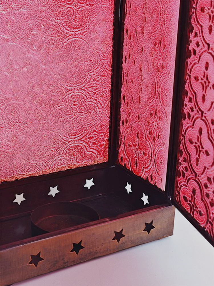 琉璃和 琉璃色彩幻美,质地透而冰凉,透出一种意味深长的优雅意境,由其镶嵌的灯罩散发着古老而浪漫的民族风情。以<A style=""border-bottom: " href='http://vip.86ty.com/%22http://www.86ty.com/baike/so.php?key=%E9%93%9C\"' target='\"_blank\"' color:="" _href='\"http://www.86ty.com/baike/so.php?key=%E9%93%9C\"' text-decoration:="" 1px="">铜为胚料赋予灯罩金属质感,哑哑光泽中方形的灯罩上镂空雕刻简约美观的五角星,搭配顶上的褶皱花边处理,张扬着独特的异域格调。热情艳丽的红色琉璃镶嵌出靓丽美观的灯罩,素雅的花纹图案雕琢其上,使本就光彩照人的琉璃越发高雅起来。华灯初上时分,从印度琉璃灯罩中洒出的光线便是居室浪漫因子的源泉。