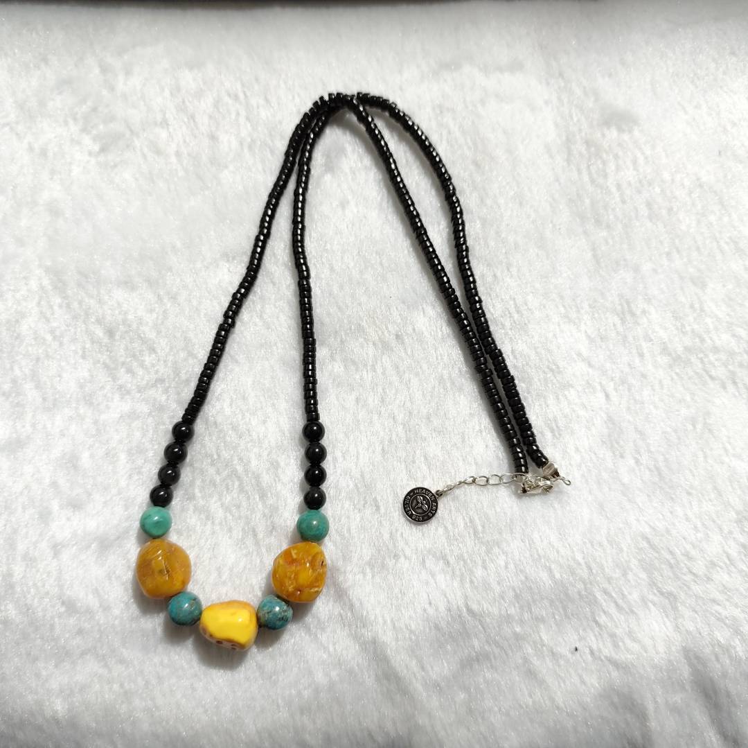 925银蜜蜡松石项链