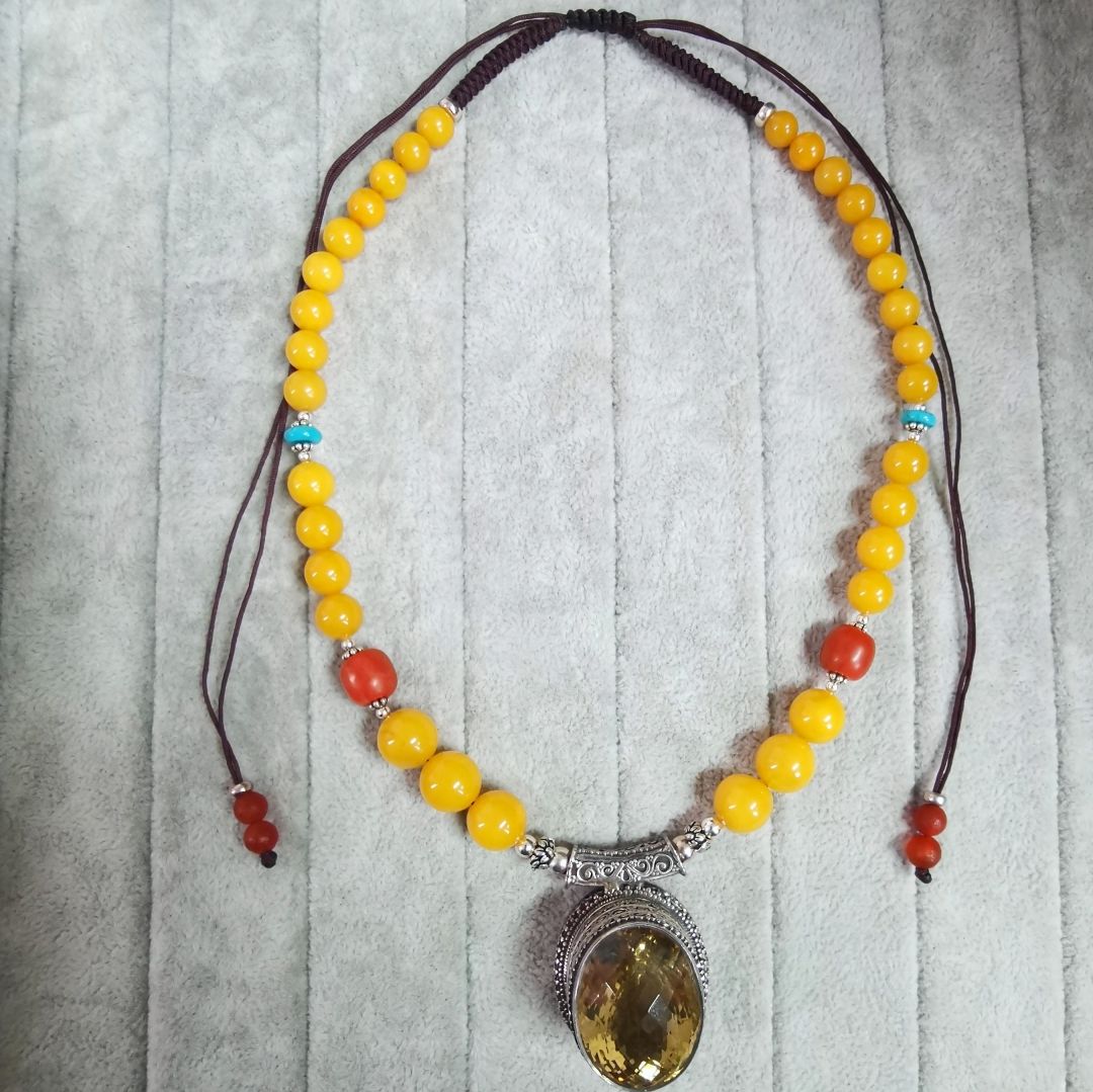 蜜蜡柠檬水晶项链【藏品】