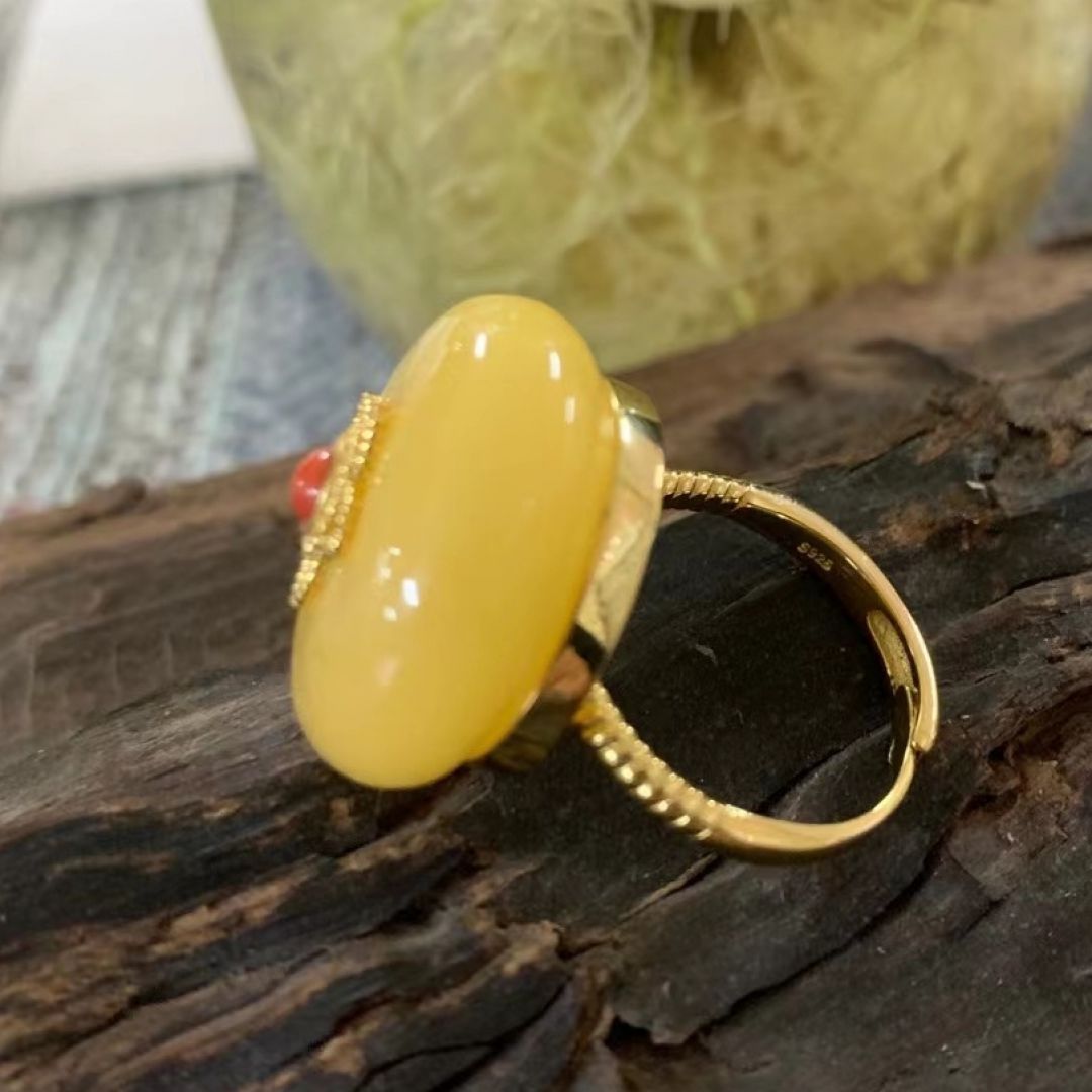 925银镏金蜜蜡戒指【藏品】