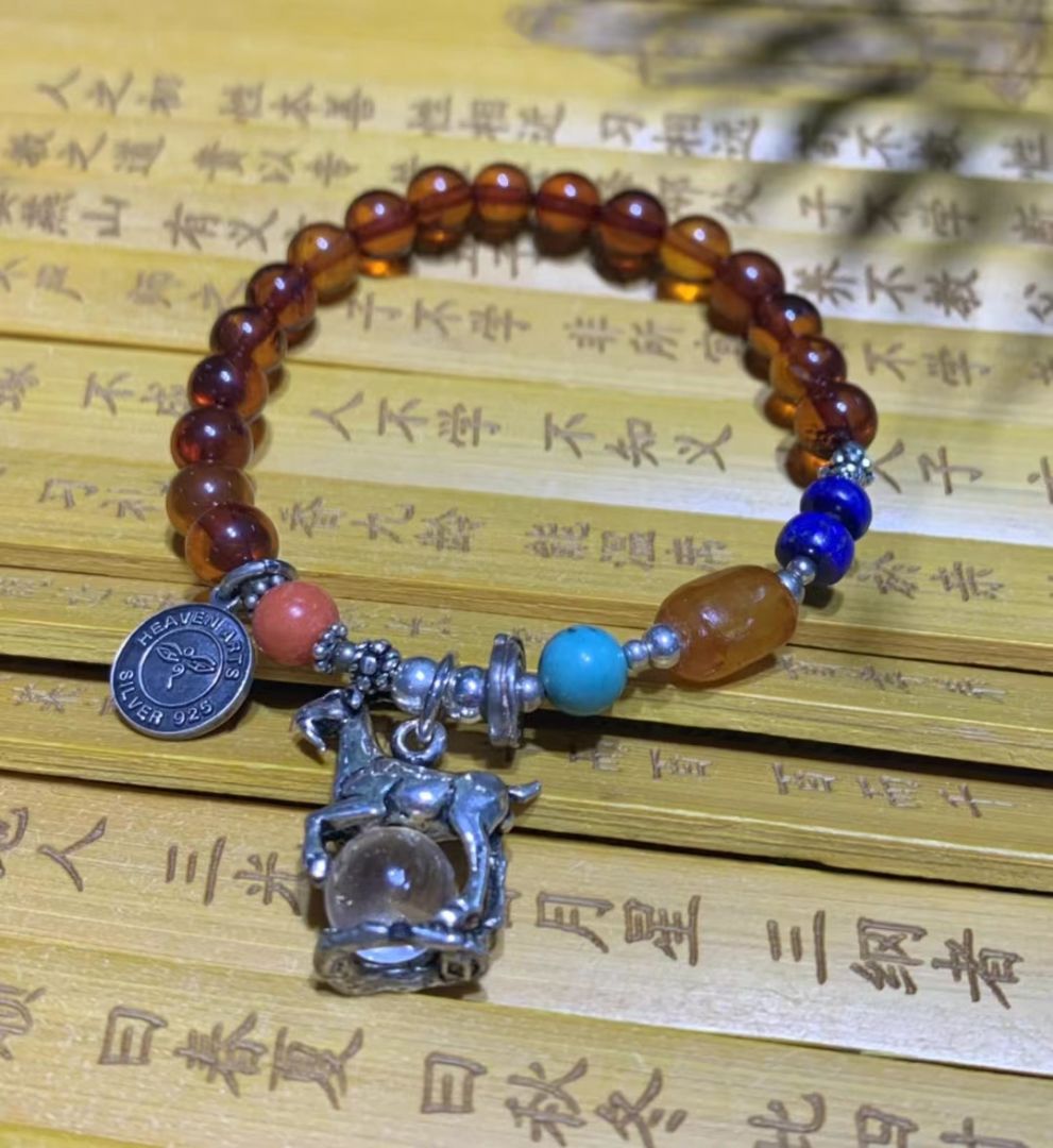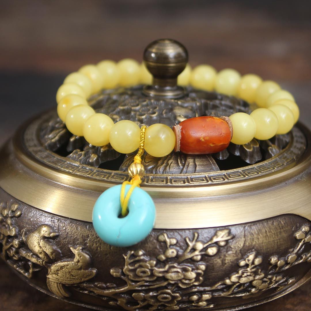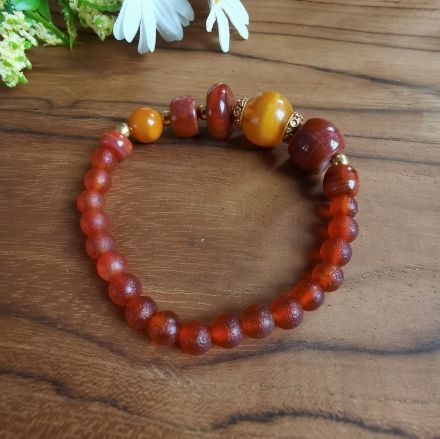蜜蜡玛瑙戴珠0.6*0.9cm【藏品】