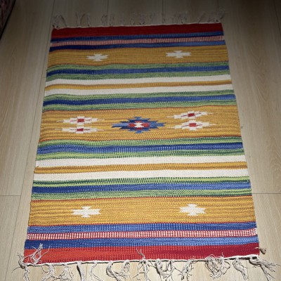 冥想毯瑜伽毯印度多用彩色棉编织地毯瑜伽垫桌旗搭毯90*60cm