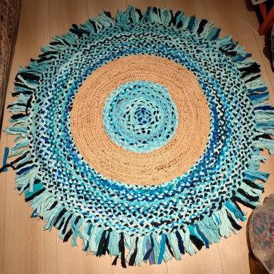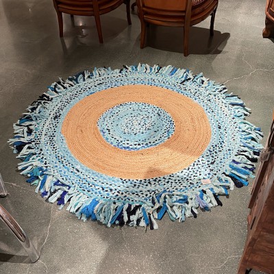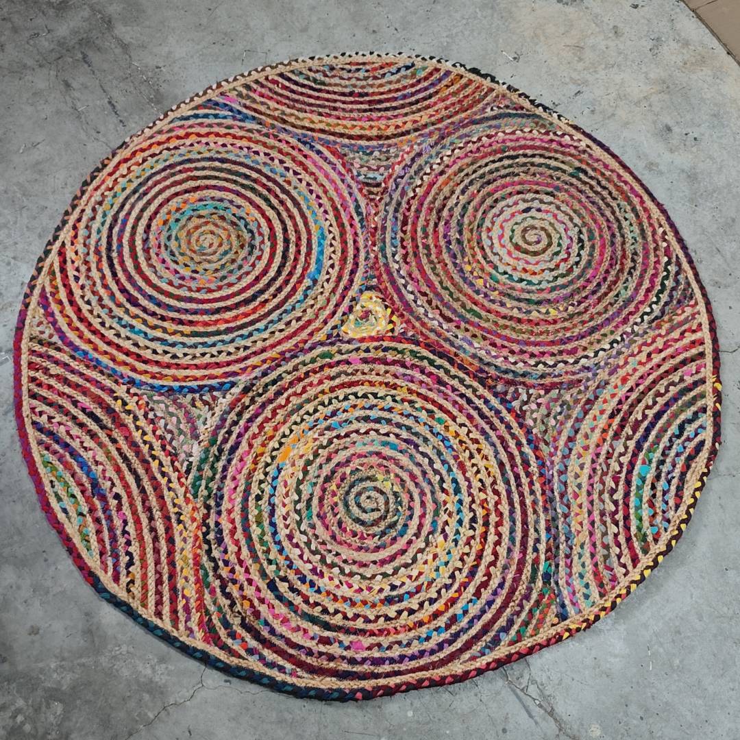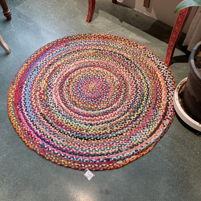 冥想毯瑜伽毯印度黄麻手工编织圆形棉布地毯104*104cm