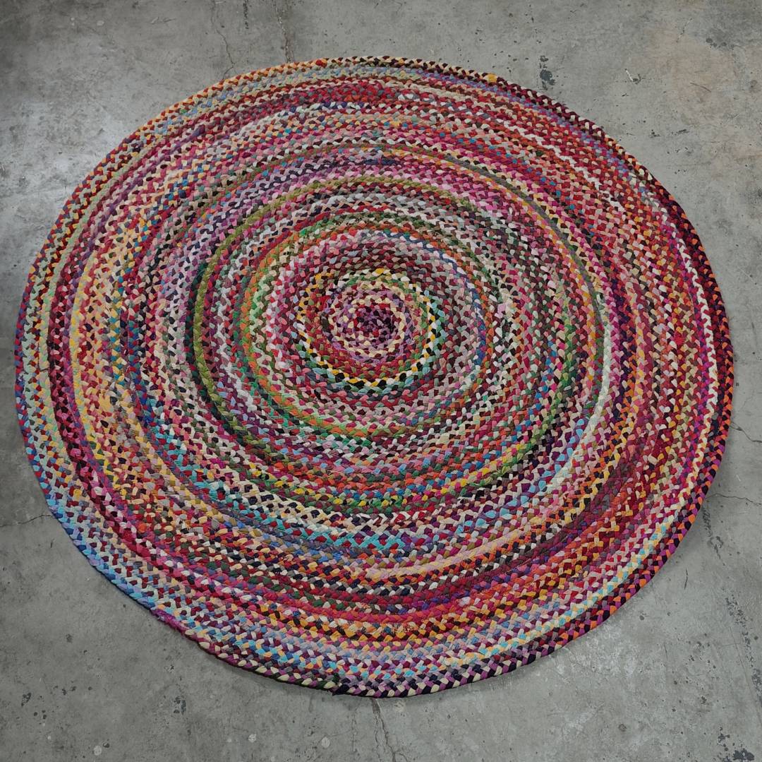冥想毯瑜伽毯印度手工编织圆形棉布地毯120*120cm