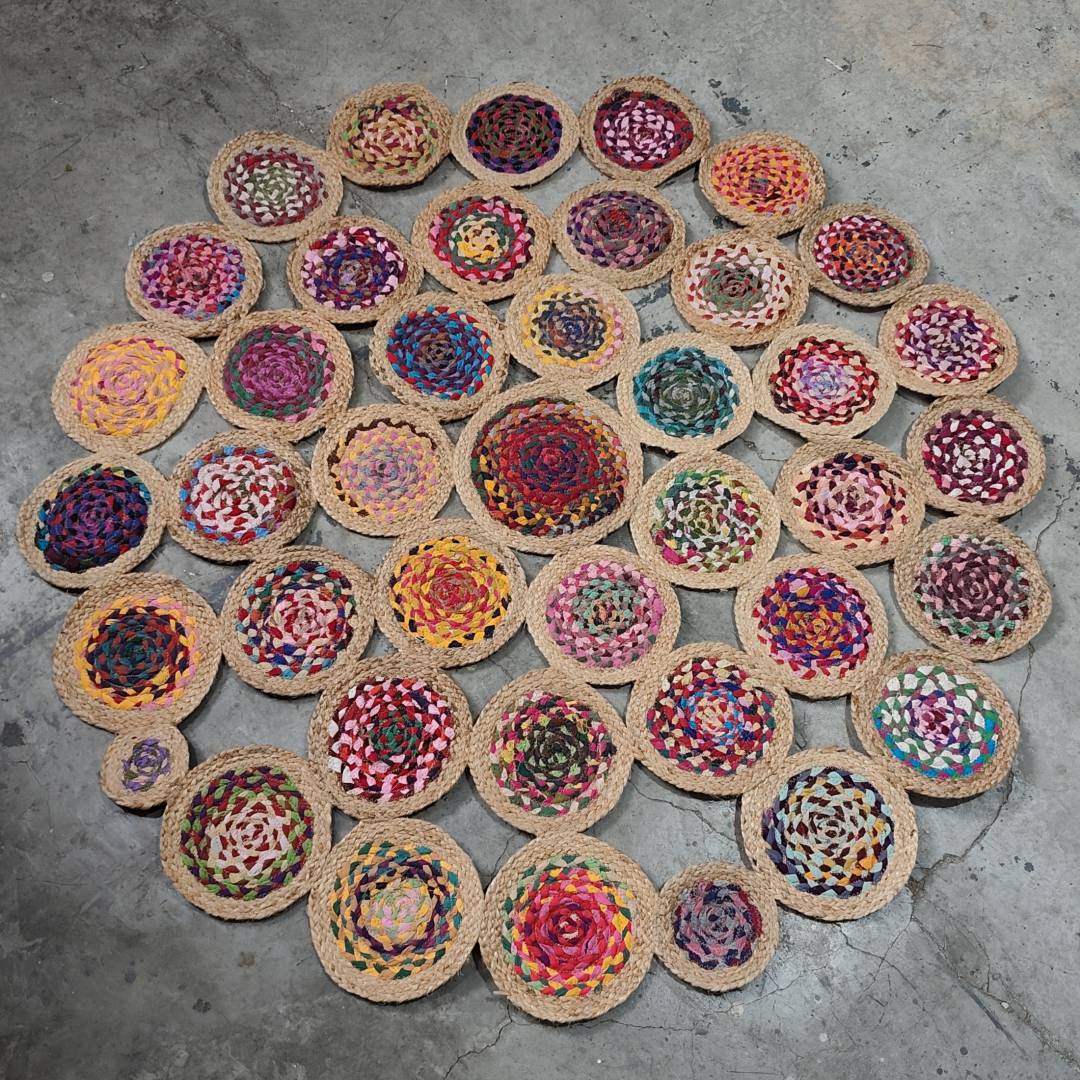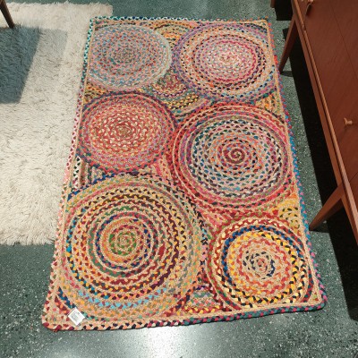 冥想毯瑜伽毯印度黄麻手工编织圆形棉布地毯130*130cm