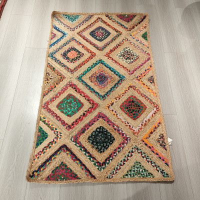 冥想毯瑜伽毯印度黄麻手工编织方形棉布地毯150*90cm