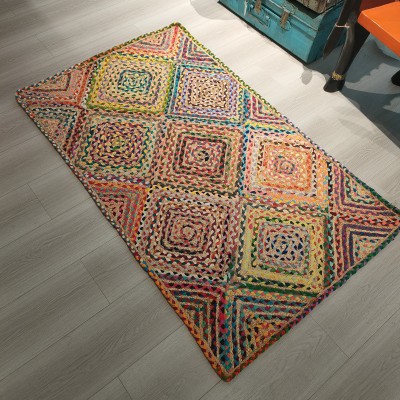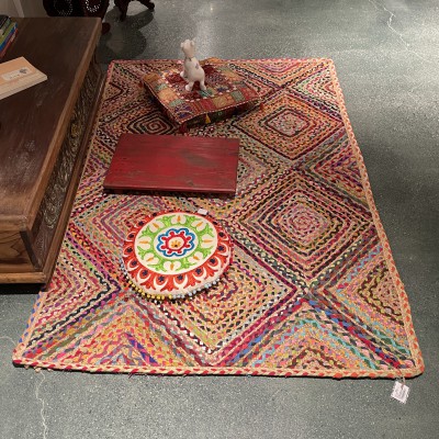 冥想毯瑜伽毯印度黄麻手工编织方形棉布地毯182*122cm