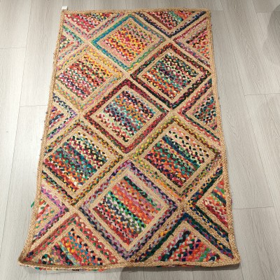 冥想毯瑜伽毯印度黄麻手工编织方形棉布地毯153*95cm