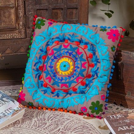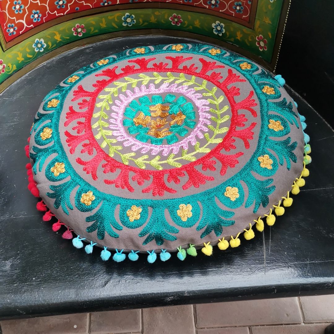 达伽布绣工圆靠垫抱枕40*40*6cm