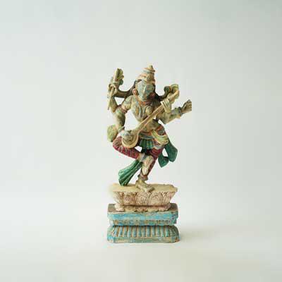 老木精雕佛像-婆罗室伐蒂SARASWATI妙音天女