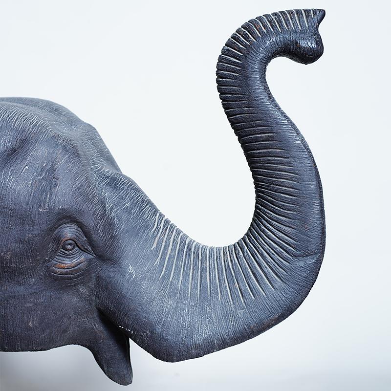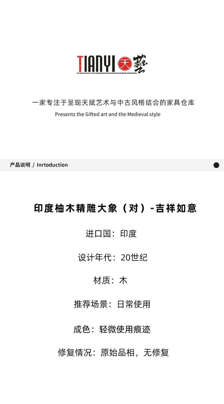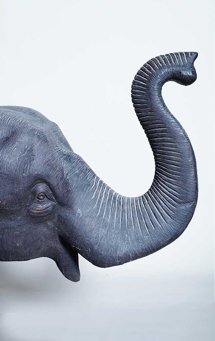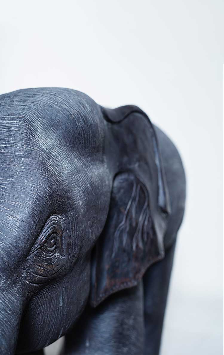 风格淳朴、色调深沉的大象,用精湛的技艺让人瞩目,选用珍贵柚木凸显品味象征。柚木被誉为“万木之王”,在缅甸、印尼被称为“国宝”。在欧洲,柚木是身份的象征,皇室更是奢侈地用柚木做家具。活灵活现的此对柚木精雕大象,是居室文化的凝聚点,也是祥瑞之气的聚集地。