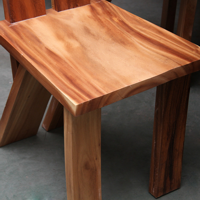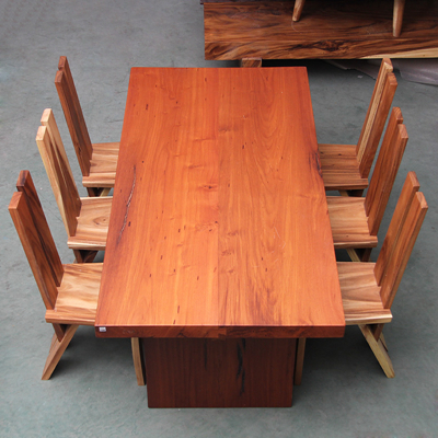 配套的六把椅子,高高的椅背完美融合了中西方特色,再配合木材本来的色泽,特别典雅大方。秉承简约主义风格的红木餐桌,没有精美繁华的雕饰,简简单单的感觉呈现出最粹自然的风味。