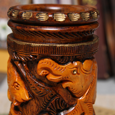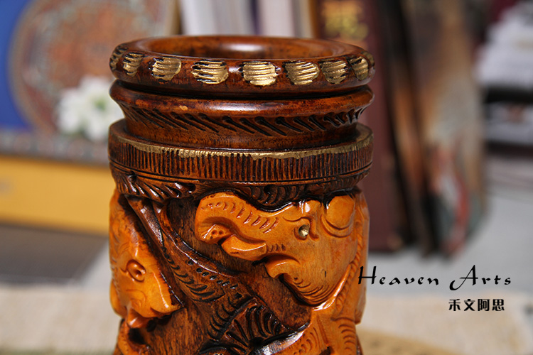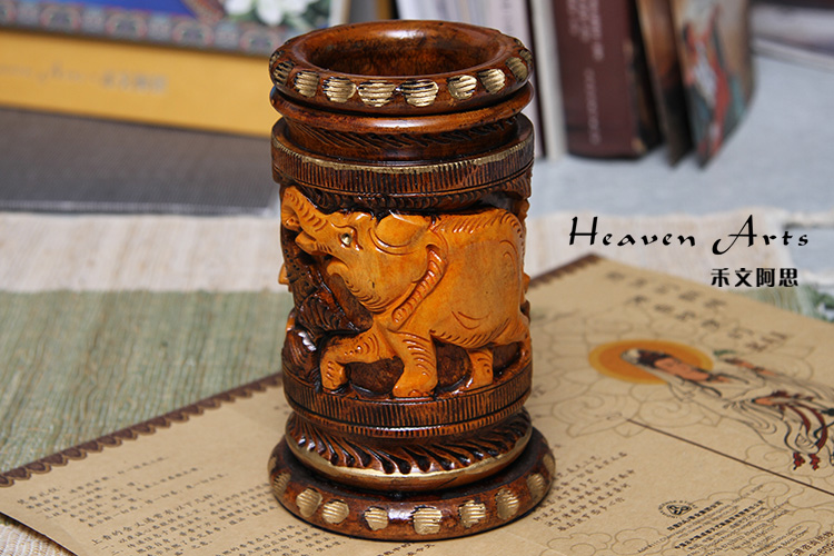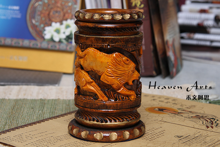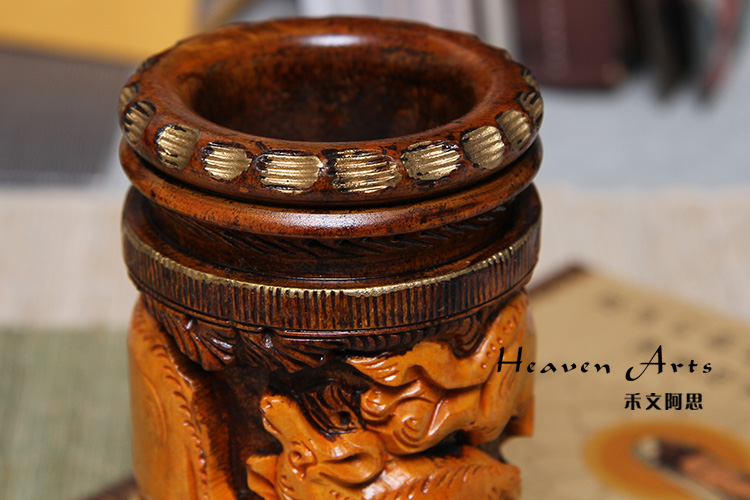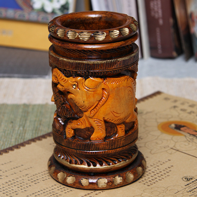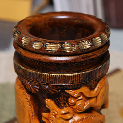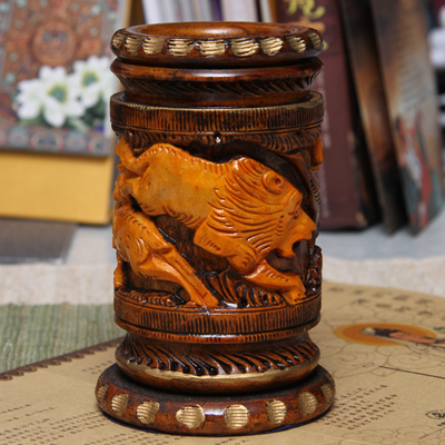 黄杨木精雕笔筒