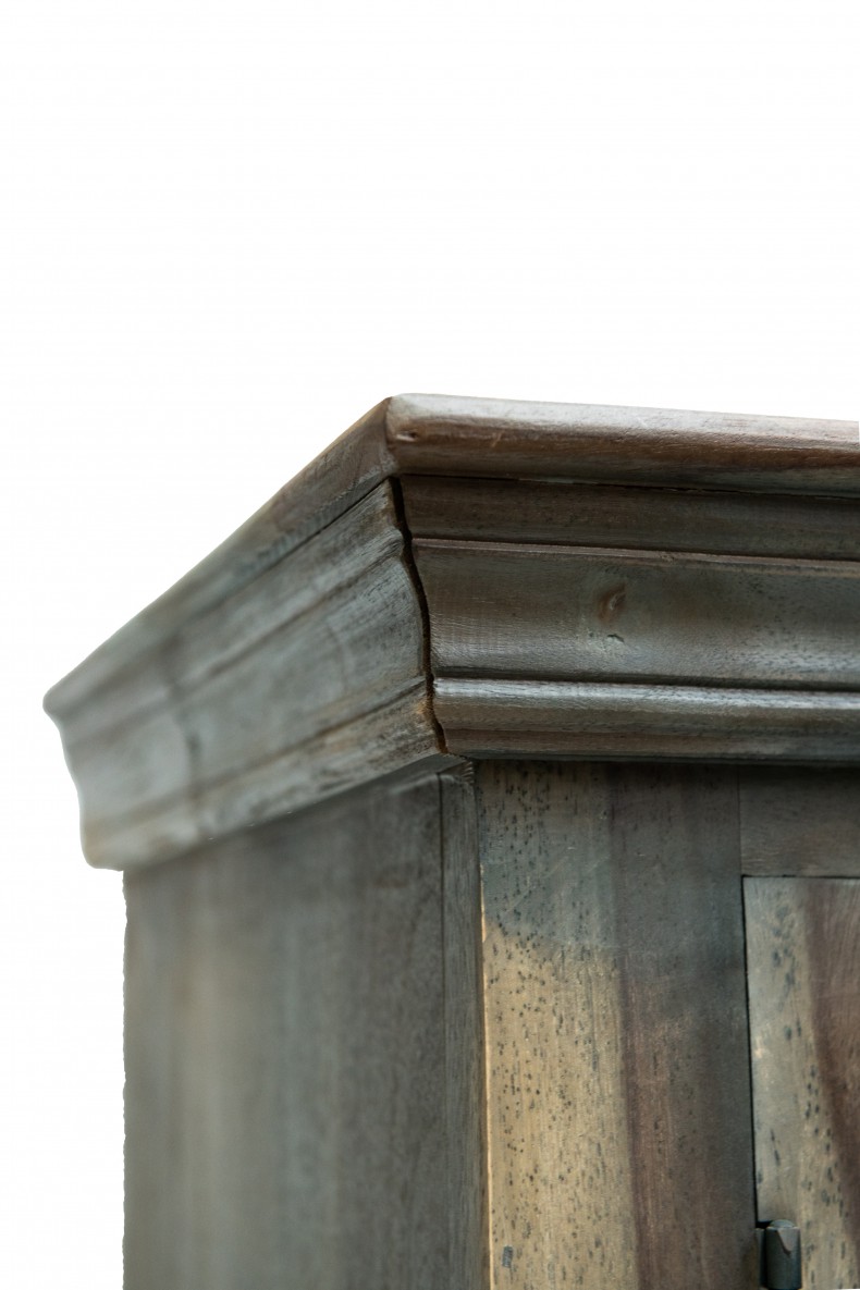 此款复古风老柚木柜子以粗犷的手法对柜子进行上色做旧,使其拥有富贵高雅的气质而不显矫揉造作。柜子表面不似现代家具般细腻光洁,木纹与摩擦痕迹渲染出独特的风味,正是老柚木岁月沧桑的最佳诠释。具有传统风味又携带丝丝欧式浪漫色彩的老柚木柜子,未加雕花修饰以粹的怀古气息征服观者挑剔的审美。双开门的高柜以格子装点柜门,给人经典雅致的感受。此款老柚木柜子虽然造型简约,风格质朴,却能传递出独特的文化气息,使复古变得平易近人。