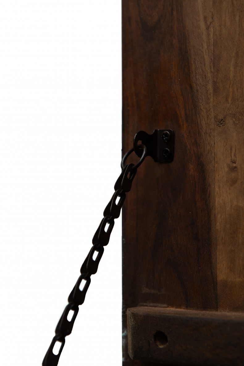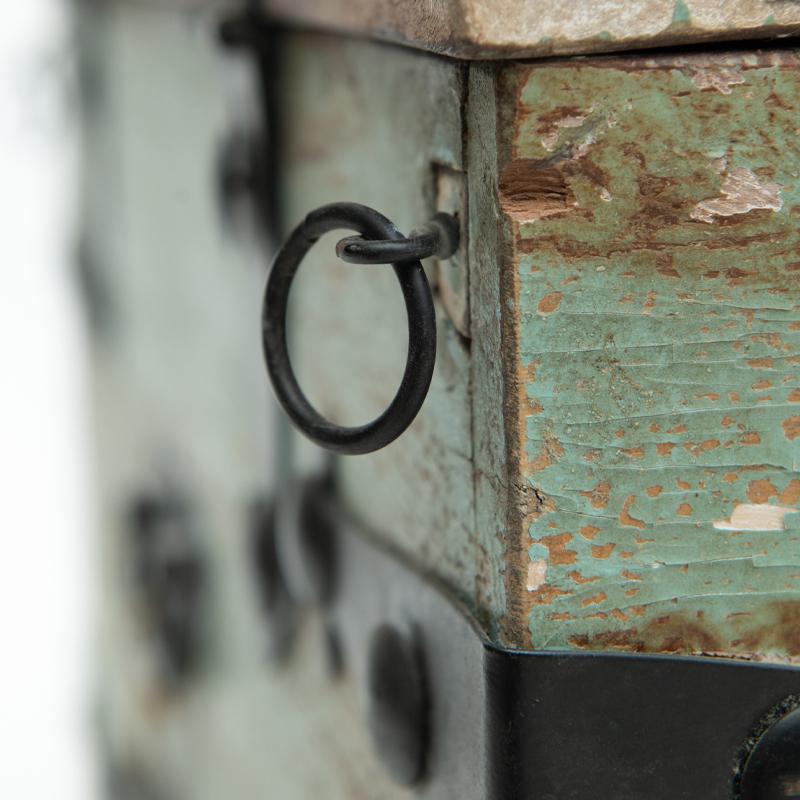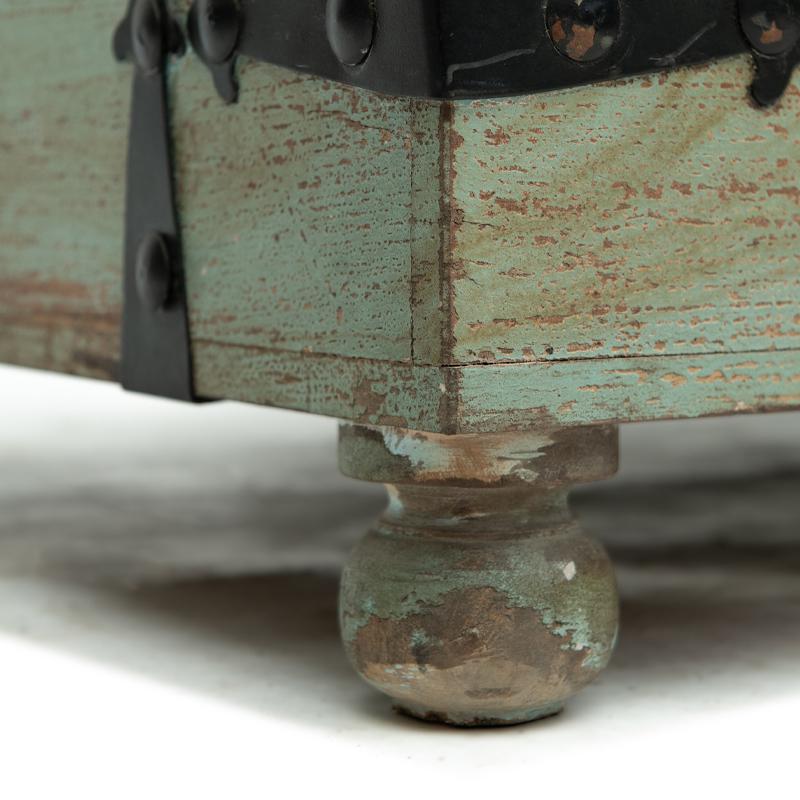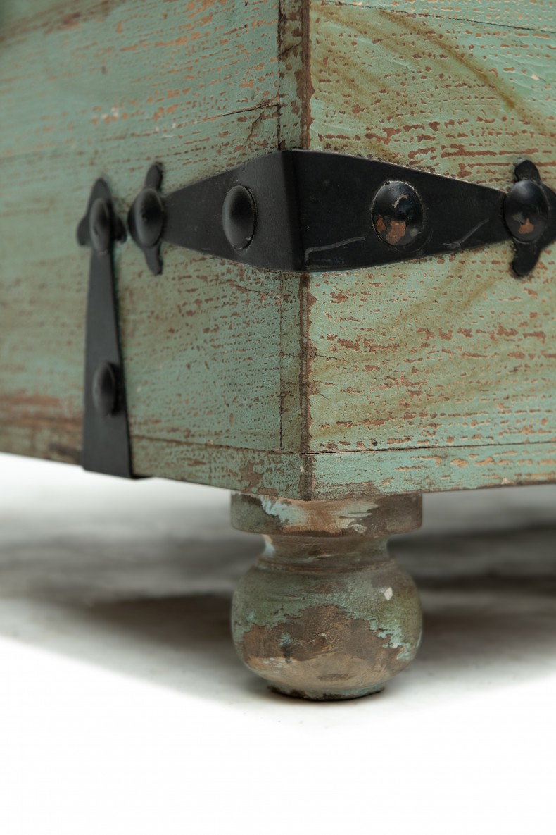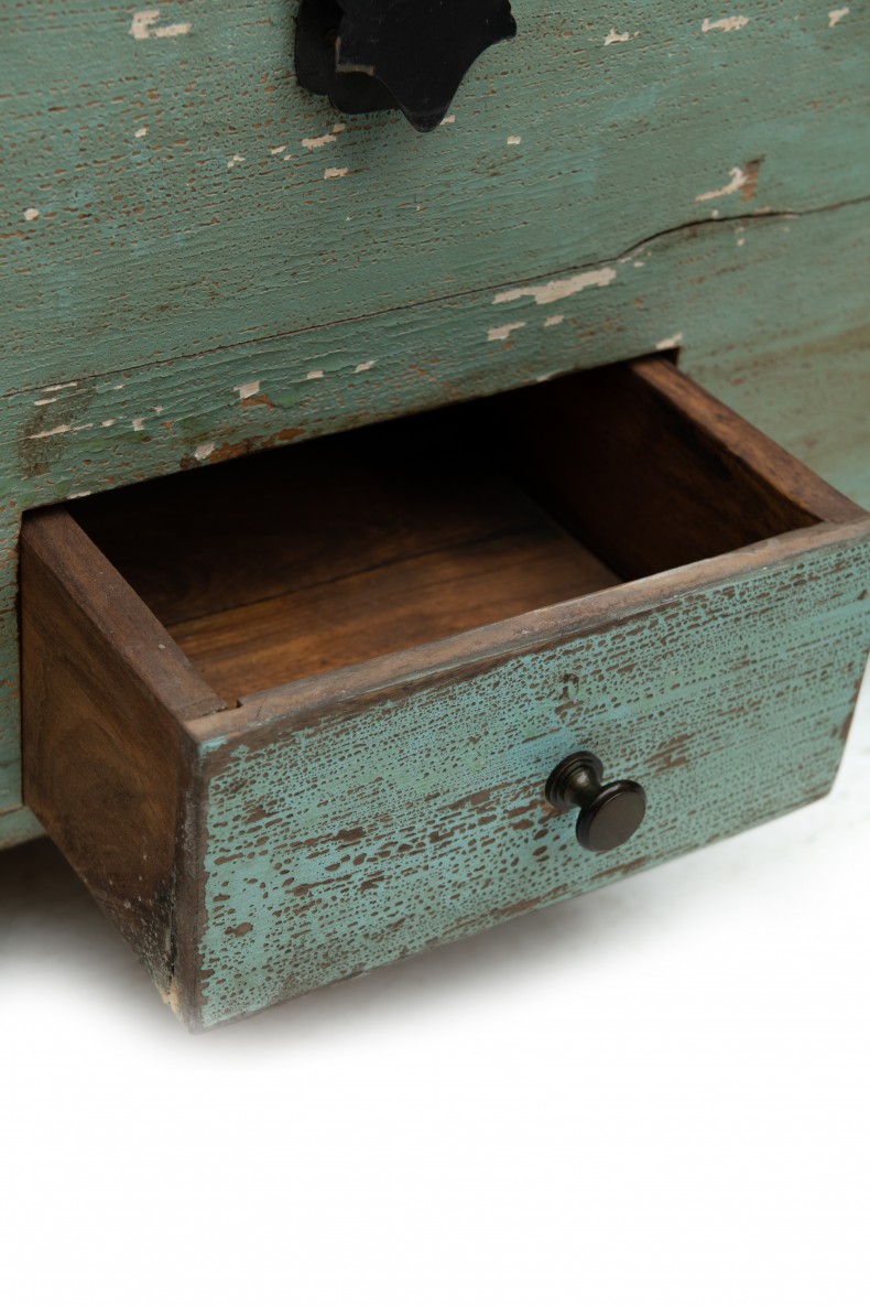 此款复古风老柚木柜子以粗犷的手法对柜子进行上色做旧处理,使其拥有富贵高雅的气质而不显矫揉造作。柜子表面不似现代家具般细腻光洁,摩擦的痕迹尤为明显,这正是老柚木岁月沧桑的最佳诠释。极具传统风味的老柚木柜子,在四周镶嵌铁片以增加厚重感。独特的顶上散开柜门设计,既个性又别致。柜子内部隔成三部分用以收纳不同的物品,同时还贴心的设计了小抽屉与多宝格用以收放首饰。此款老柚木柜子虽然造型简约,却能传递出独特的文化气息,使复古变得平易近人。