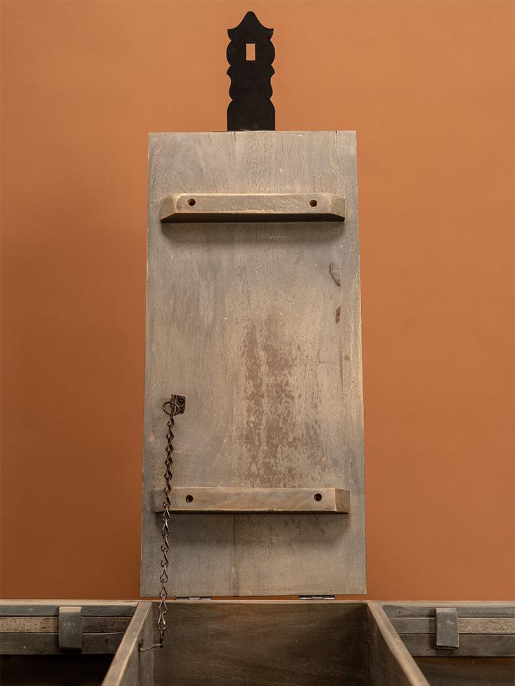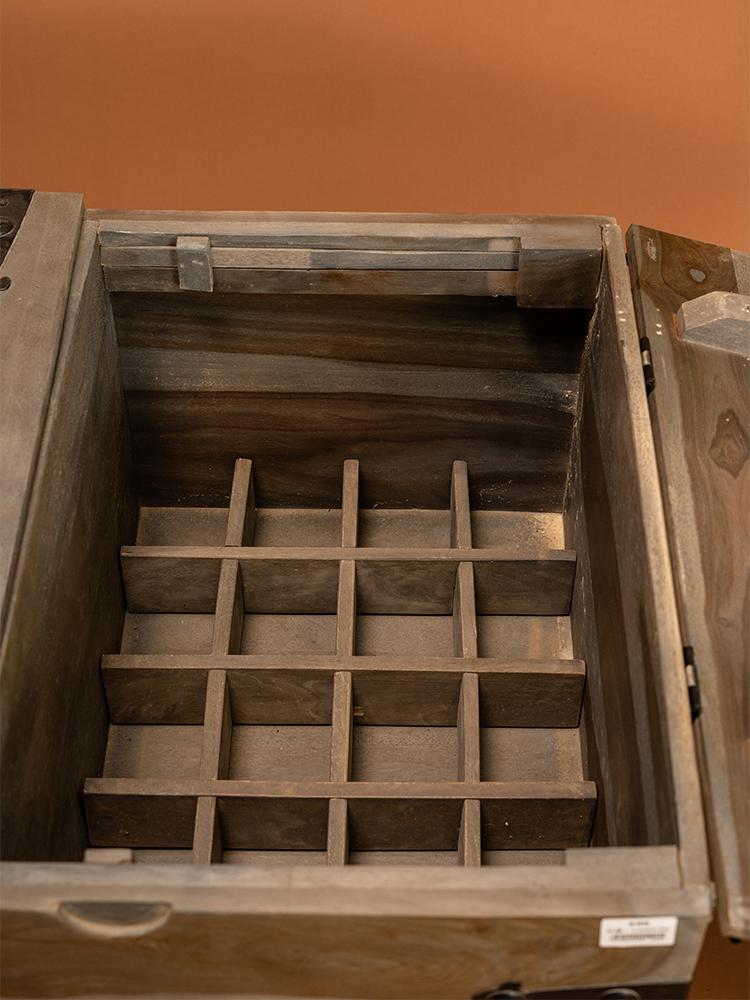 复古风老柚木柜子以粗犷的手法进行上色做旧处理,使其拥有富贵高雅的气质而不显矫揉造作。柜子表面不似现代家具般细腻光洁,摩擦的痕迹尤为明显,沉酿出一种独特的年代韵味。极具传统风味的老柚木柜子,在四周镶嵌铁片以增加厚重感,既时尚又个性。独特的顶上三开柜门设计,既独特又创新。柜子内部隔成三部分用以收纳不同的物品,同时还贴心的设计了小抽屉与多宝格用以收放首饰。此款老柚木柜子虽然造型简约,却能传递出独特的文化气息,使复古变得平易近人。